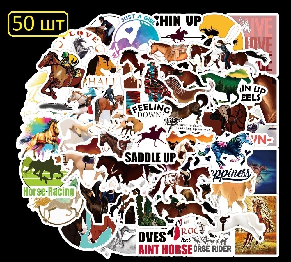 Наклейки для творчества, Набор стикеров и наклеек лошади, лошадки, скачки, конкур