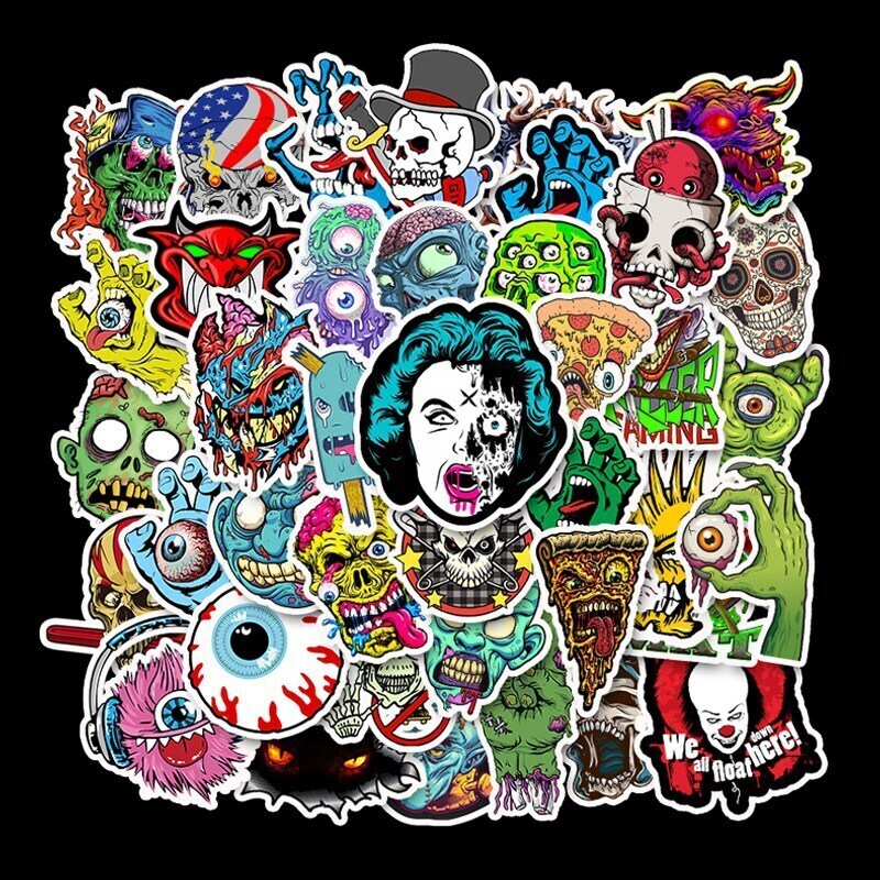 Наклейки Хоррор, Черепа, Пеннивайз, ОНО водостойкие 50шт (3-6см)