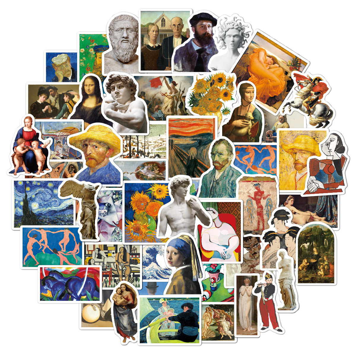 Наклейки Искусство живописи / Art водостойкие 52шт (6-8см)