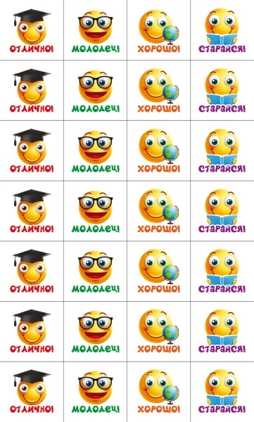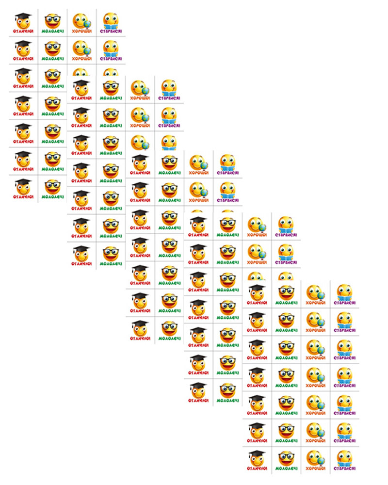 Комплект наклеек для поощрения детей (оценки), 5 листов, размер 153мм*92мм, артикул 88.770