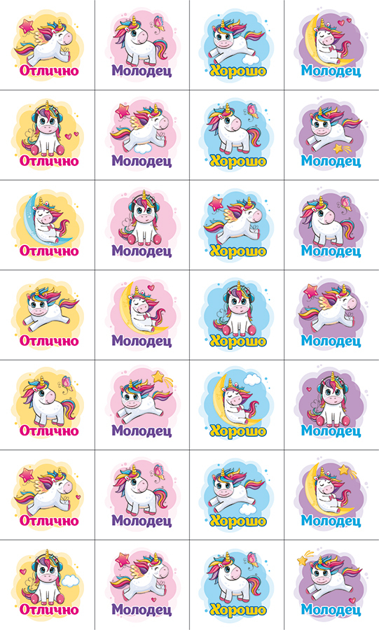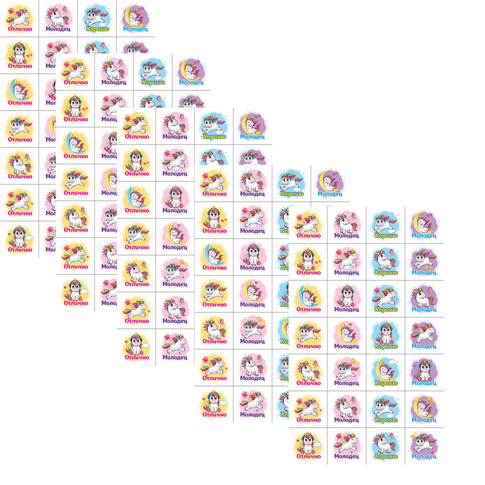 Комплект наклеек для поощрения детей (оценки), 5 листов, размер 153мм*92мм, артикул 88.773