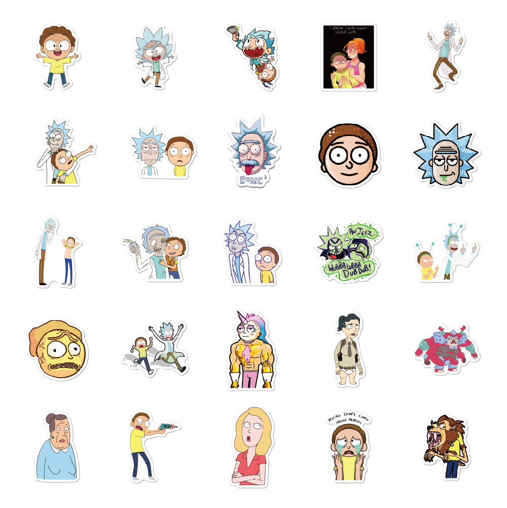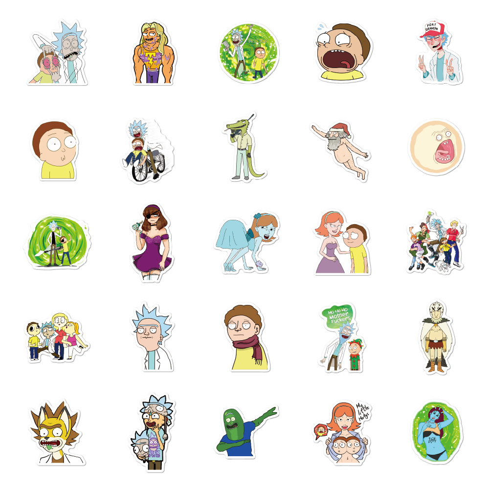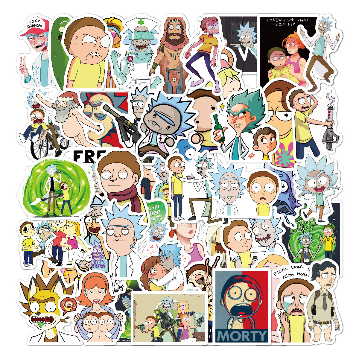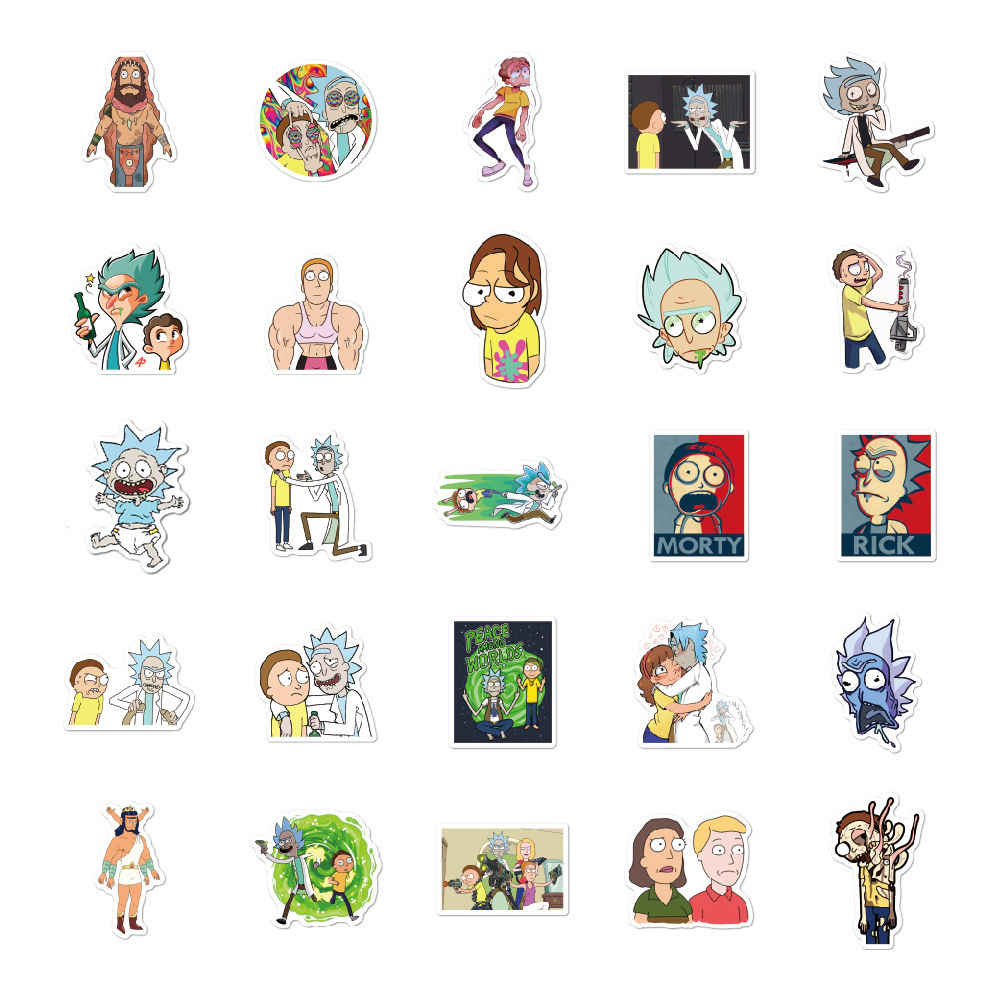 Наклейки Рик и Морти водостойкие 100шт (3-6см)