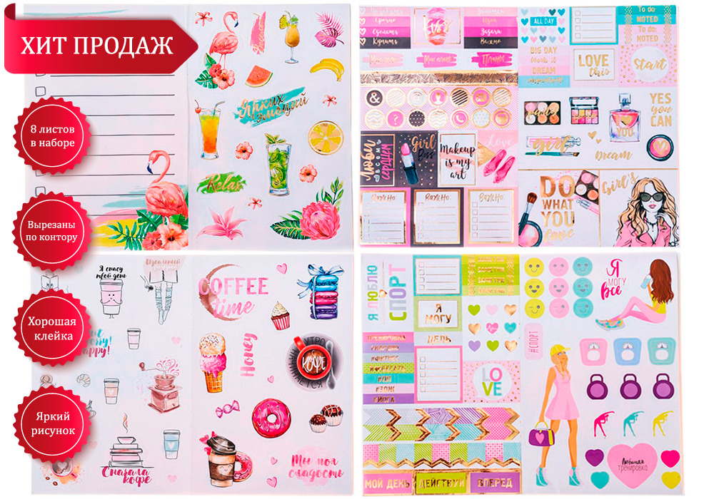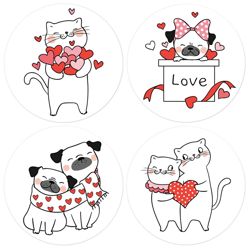 Милые стикеры Love 4 дизайна. 500 наклеек для ваших продаж