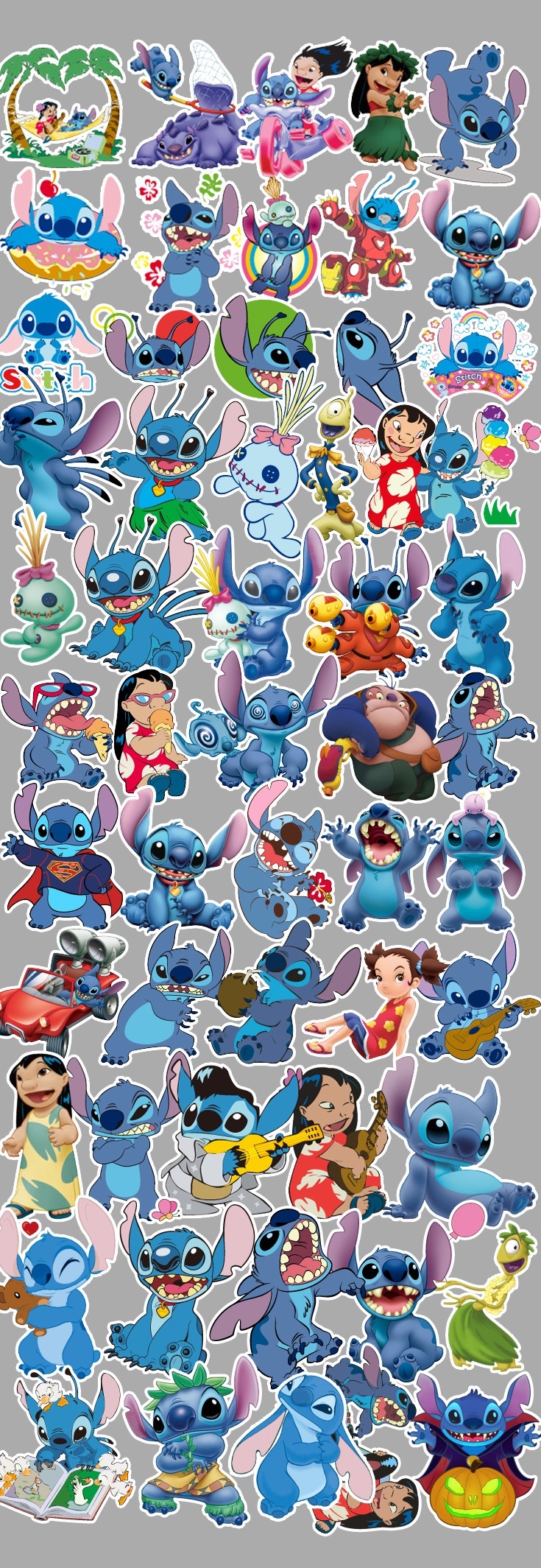 Наклейки Лило и Стич / Lilo & Stitch водостойкие 55шт (3-6см)