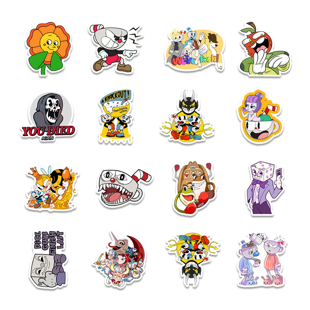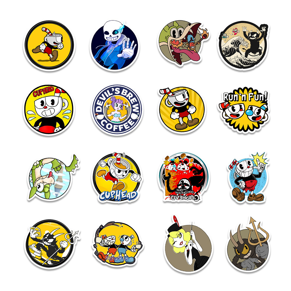 Наклейки Cuphead водостойкие 50шт (4-7см)