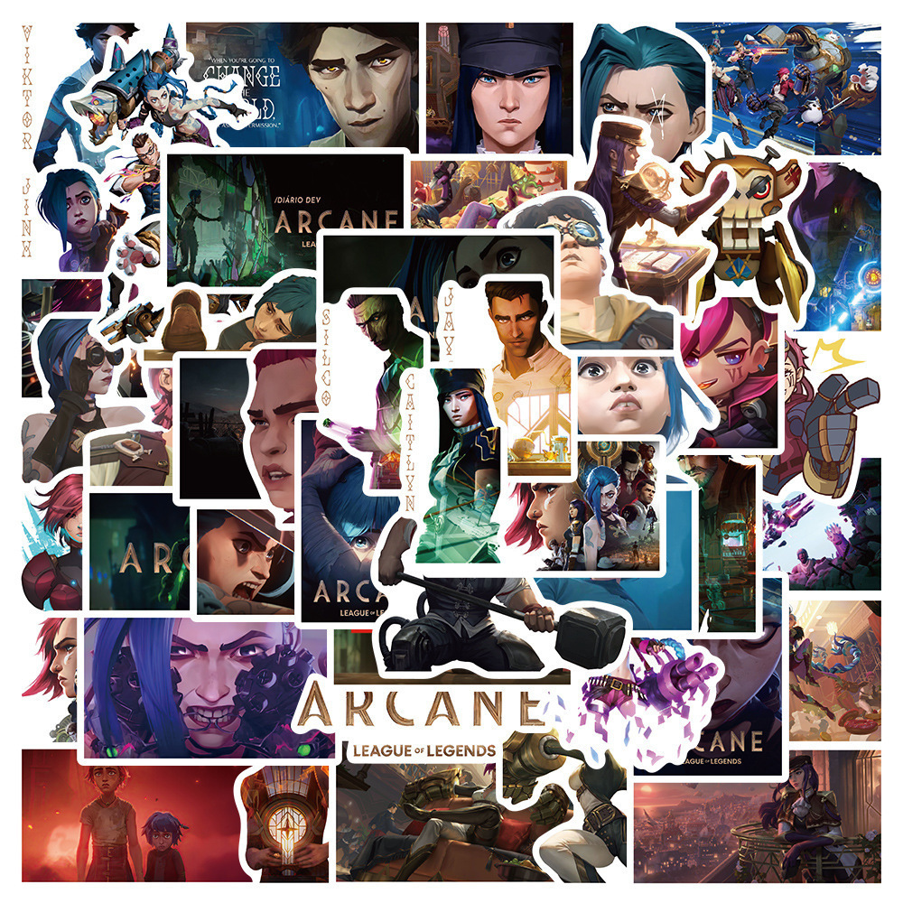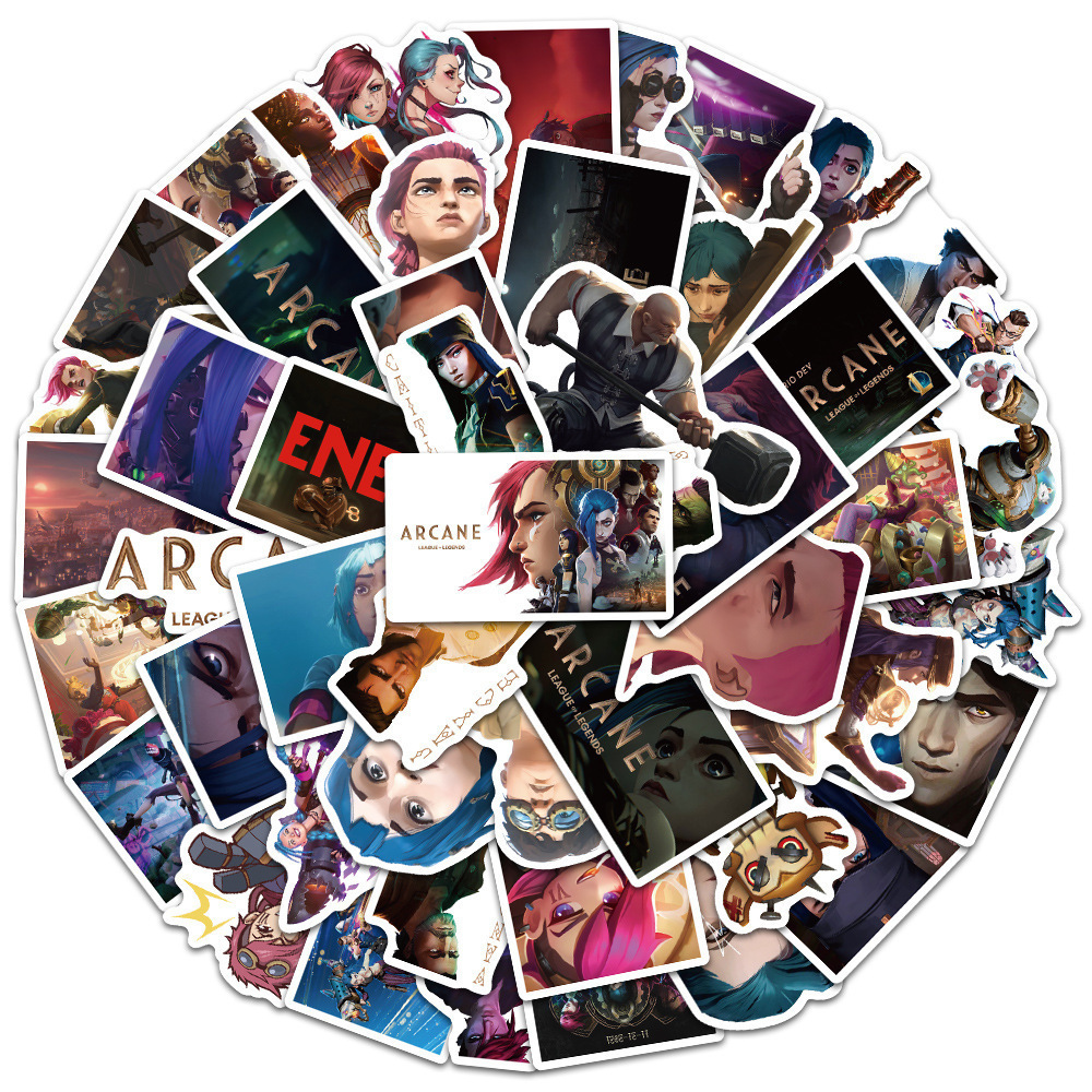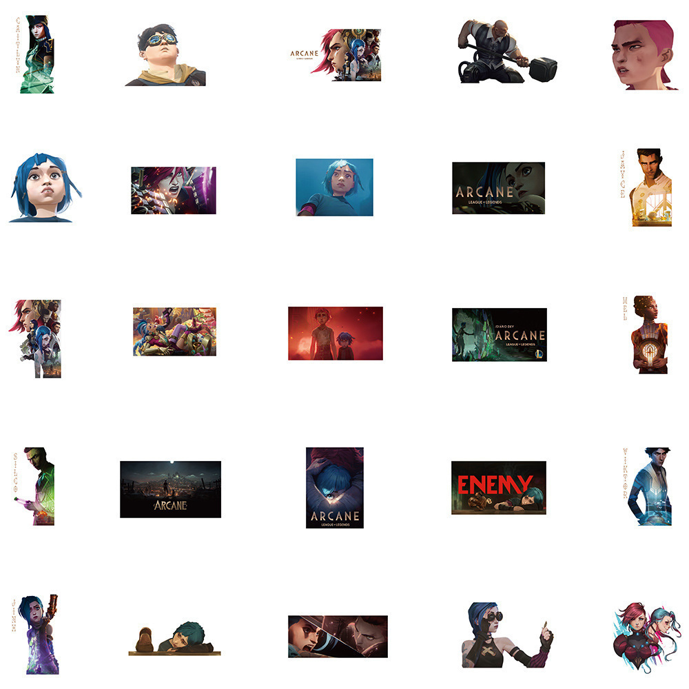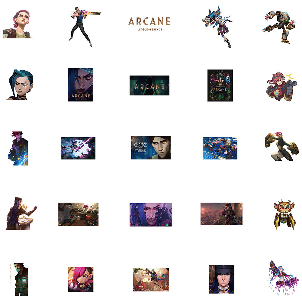 Наклейки Аркейн / Arcane: League of Legends водостойкие 50шт (3-6см)