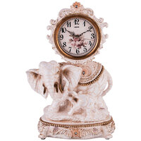 Часы Настольные Кварцевые "Слониха Со Слоненком" Цвет: Белый С Золотом 33*19*47 См. Диам. Циф.=13См.