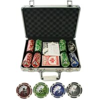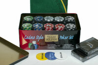 Набор для покера на 200 фишек в жестяной коробке с сукном "Texas Holdem"