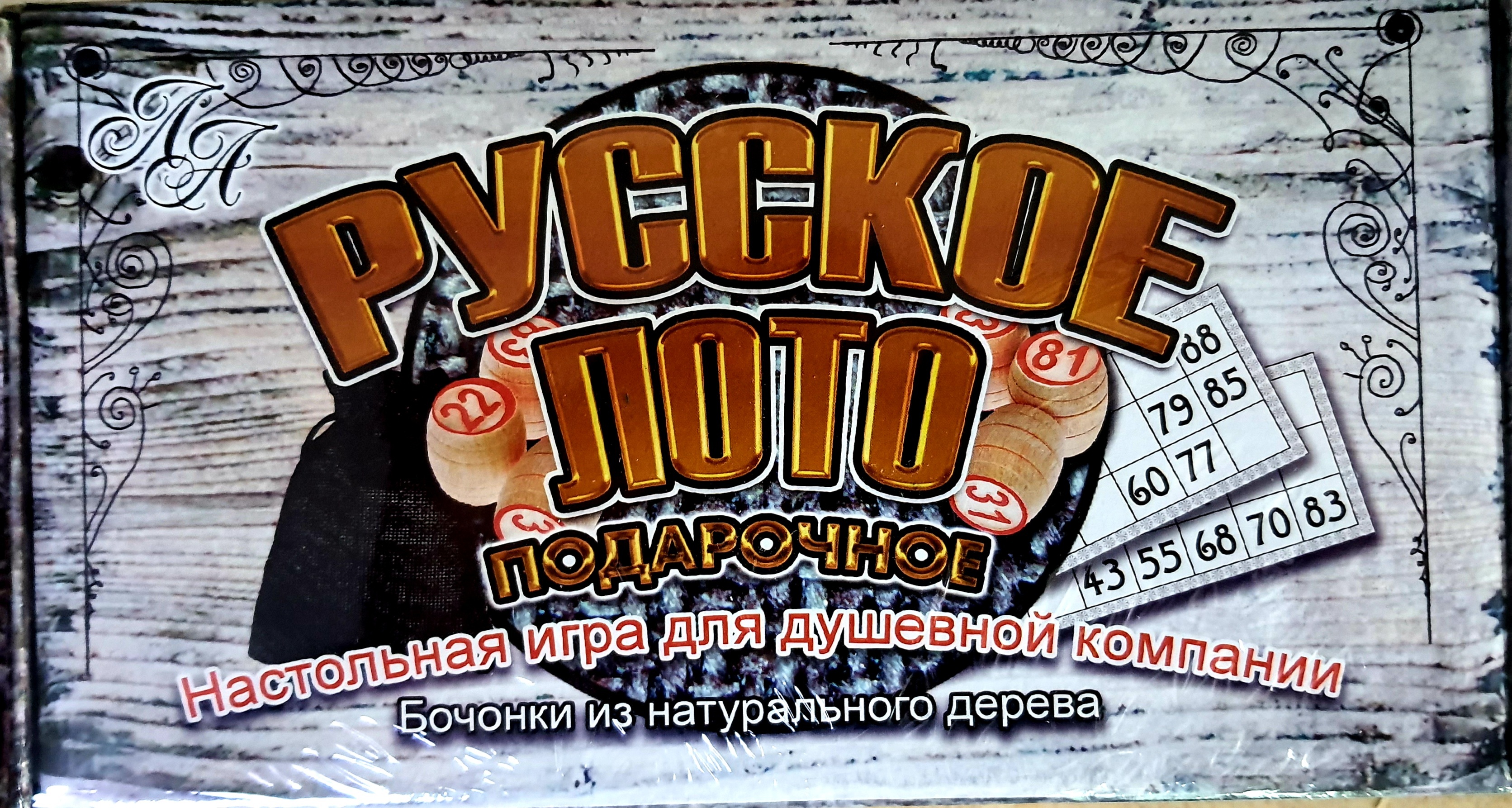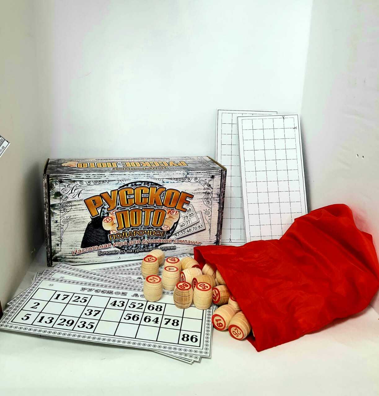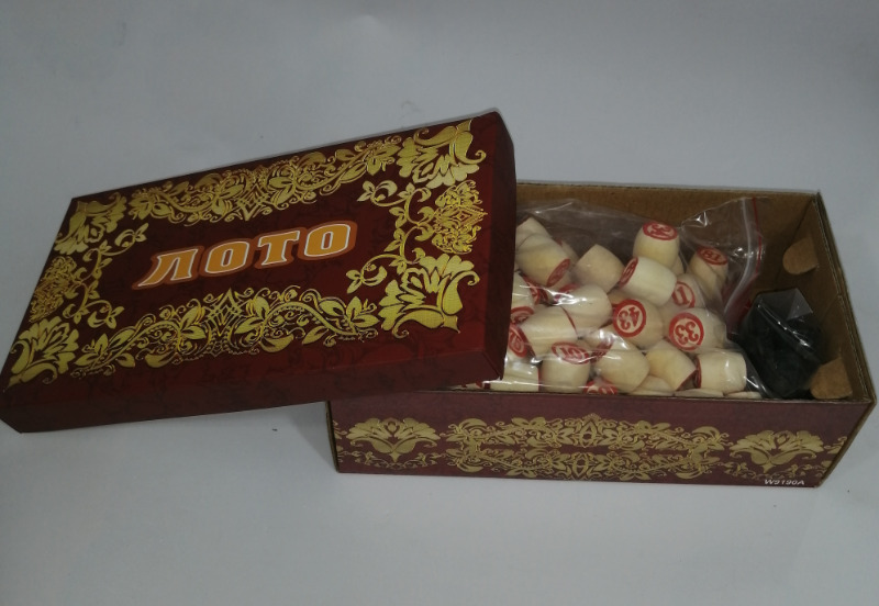 Лото русское с деревянными бочонками и пластиковыми фишками в картонной коробке