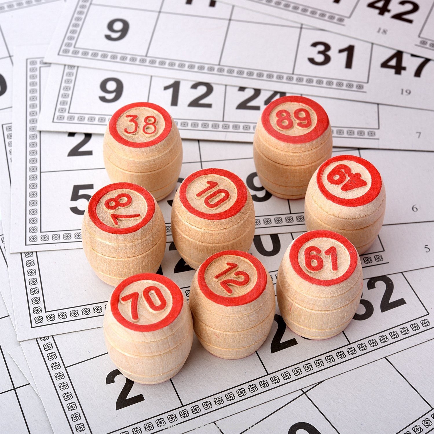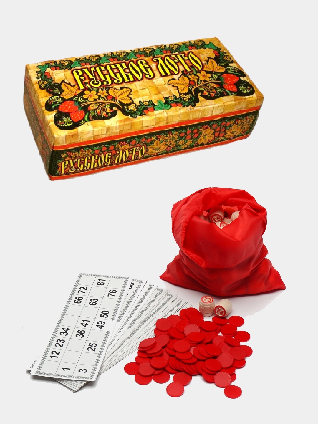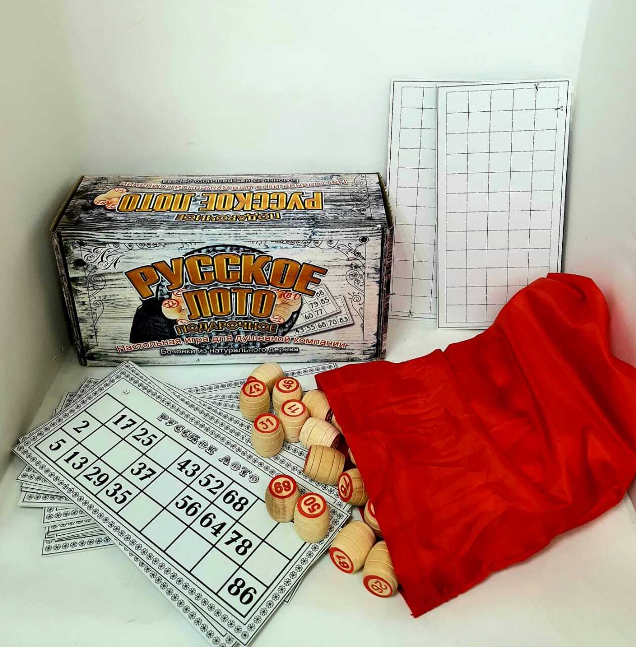 Лото русское с деревянными бочонками и пластиковыми фишками в картонной коробке