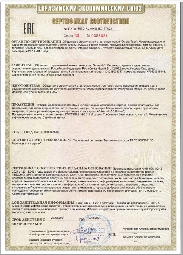 Лото "Время игры", жёлтые фишки