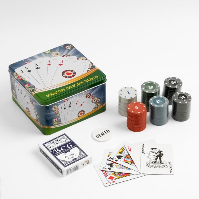 Покер, набор для игры (карты 54 шт, фишки 120 шт.), с номиналом, 15 / 15 см, микс