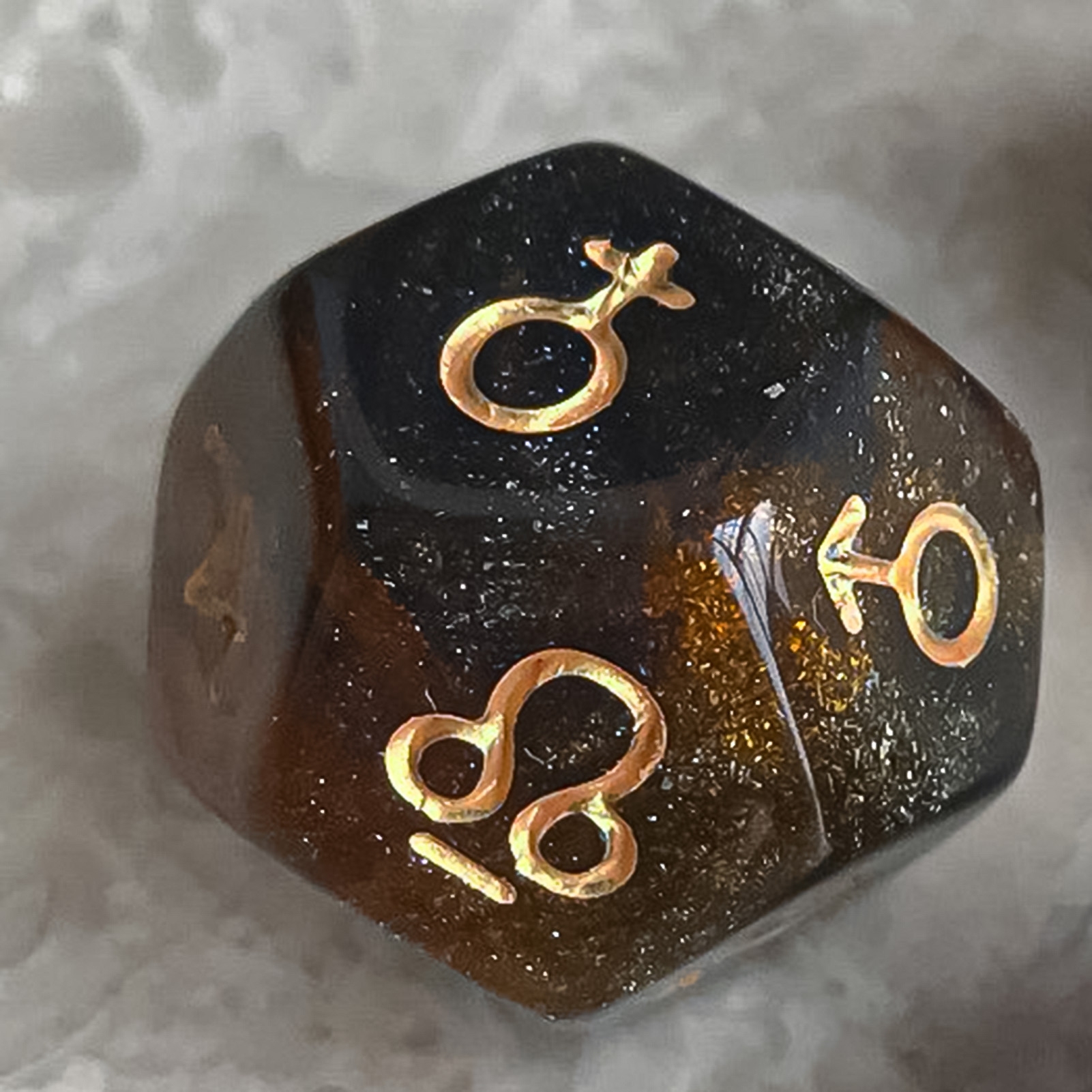 Дайсы (кости, кубики игральные), набор из 7 костей, Капли крови, бархатный мешочек