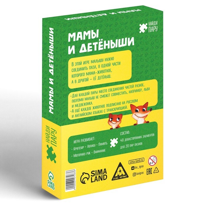 Развивающая игра Найди пару. Мамы и детёныши, 40 элементов, 3+