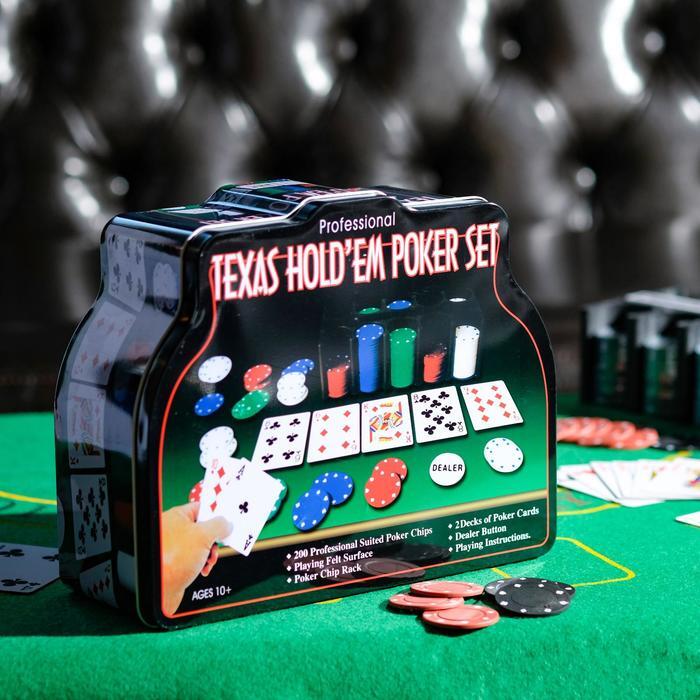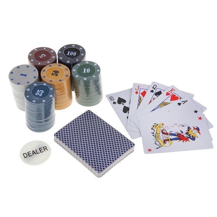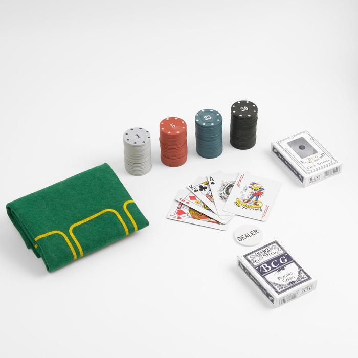 Набор для игры в покер: 2 колоды карт, фишки 200 шт., сукно 60x90 см, микс