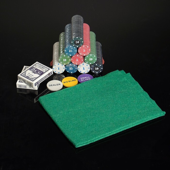 Покер, набор для игры (карты 2 колоды микс, фишки 100 шт.), без номинала 20 х 20 см