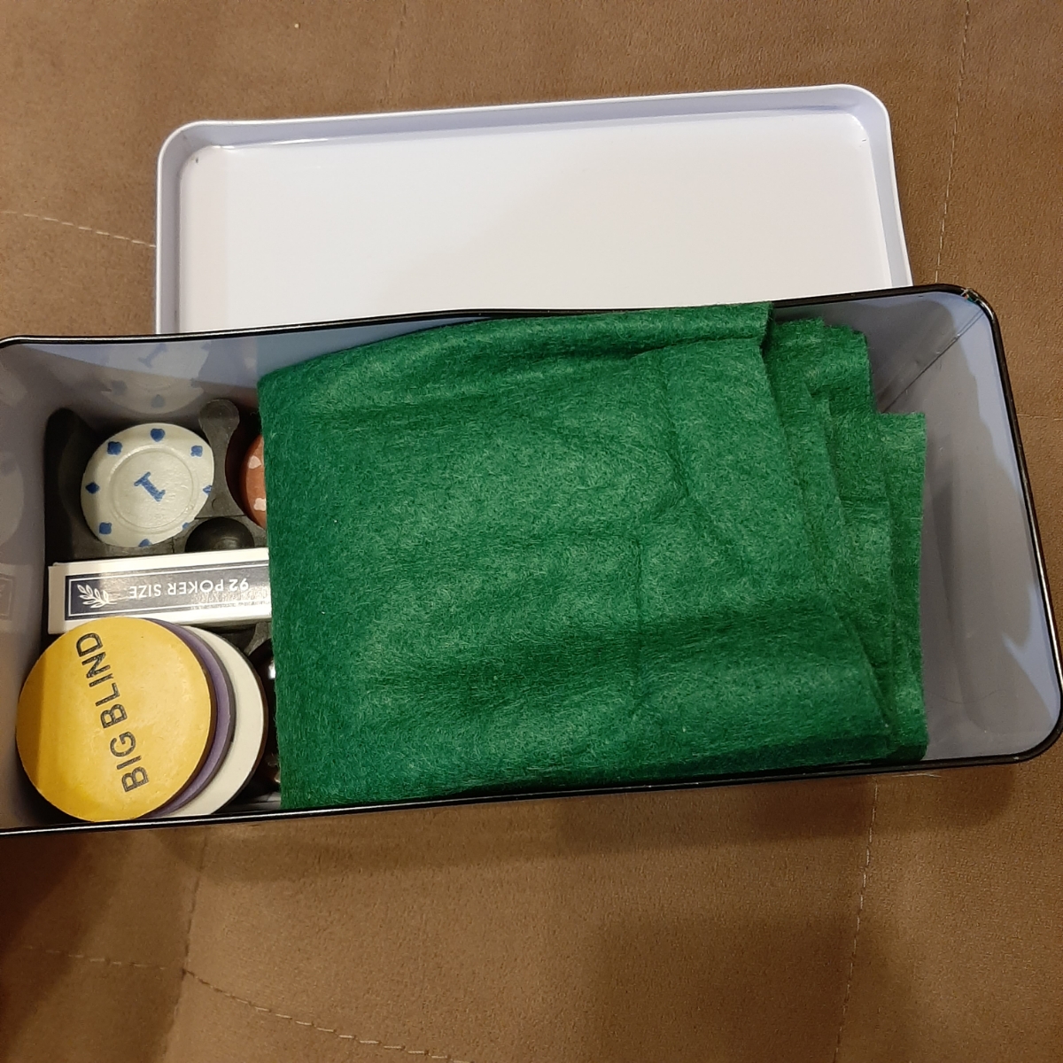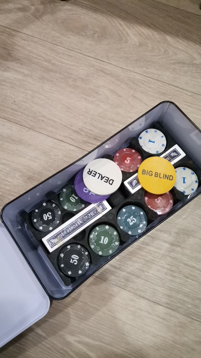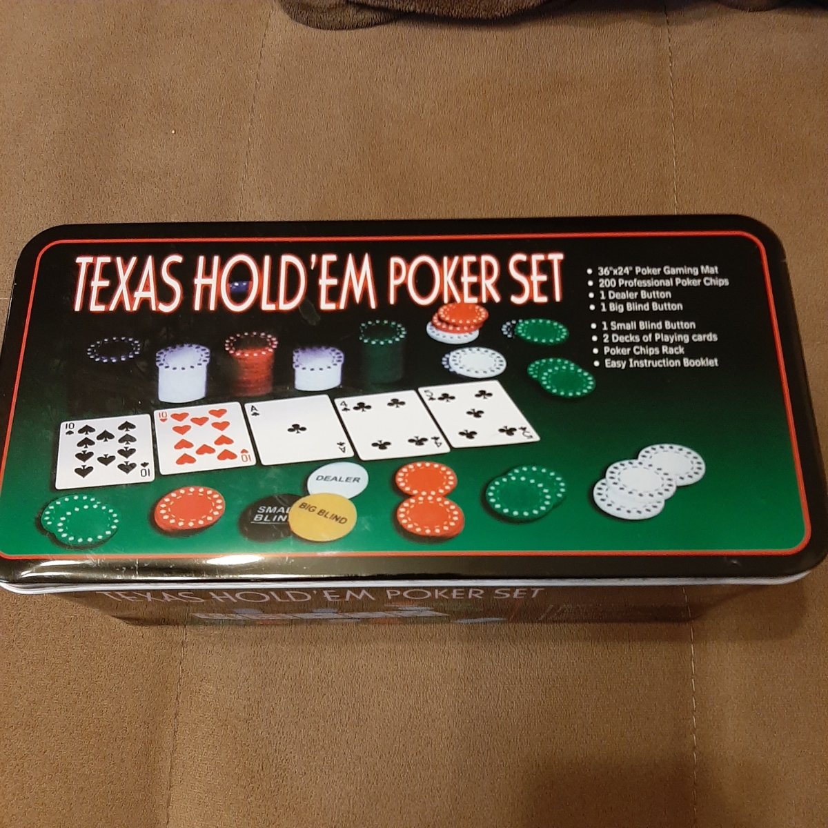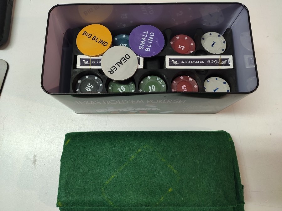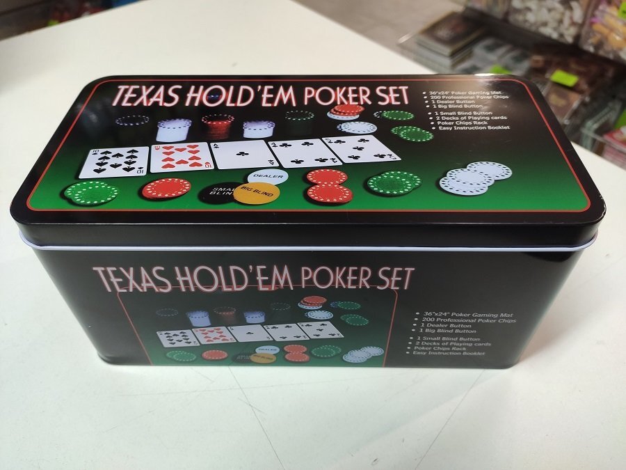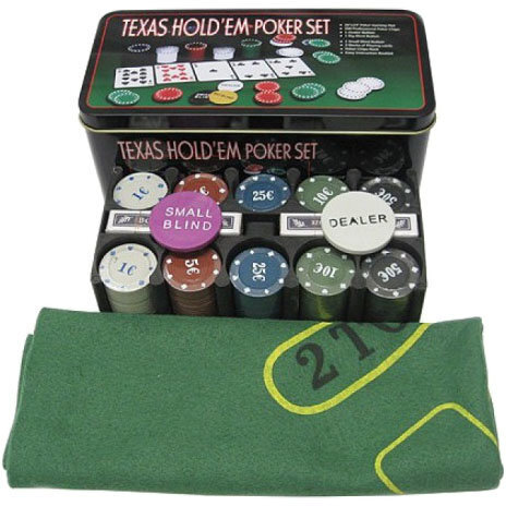 Набор для покера из 200 фишек с номиналом в металлической коробке (с сукном)