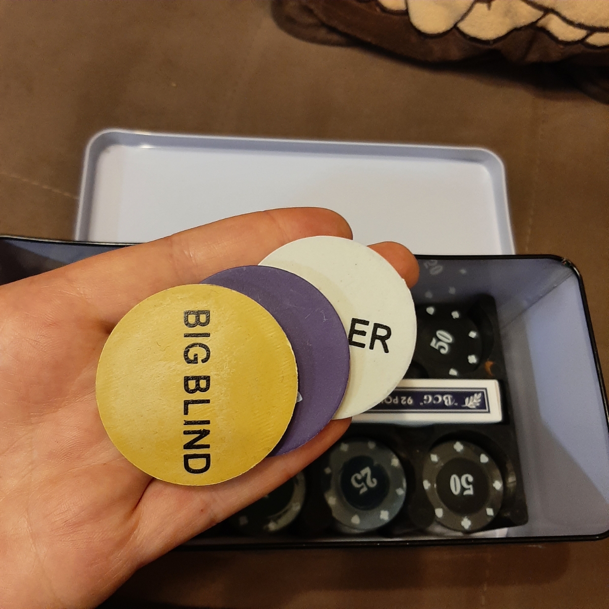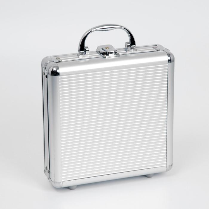 Покер в металлическом кейсе (карты 2 колоды, фишки 100 шт, 5 кубиков), 20х20 см