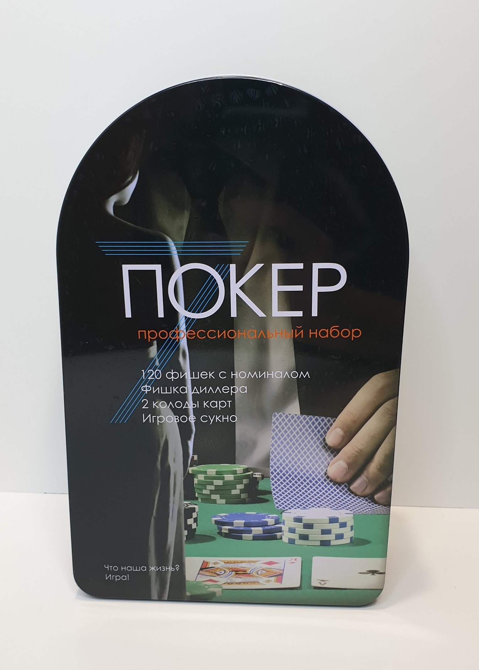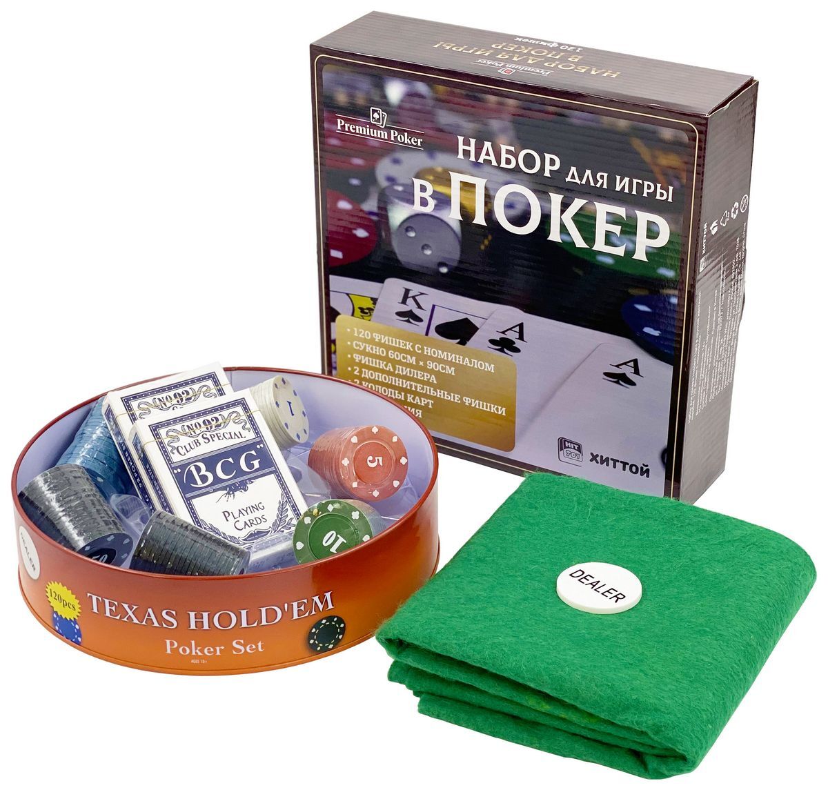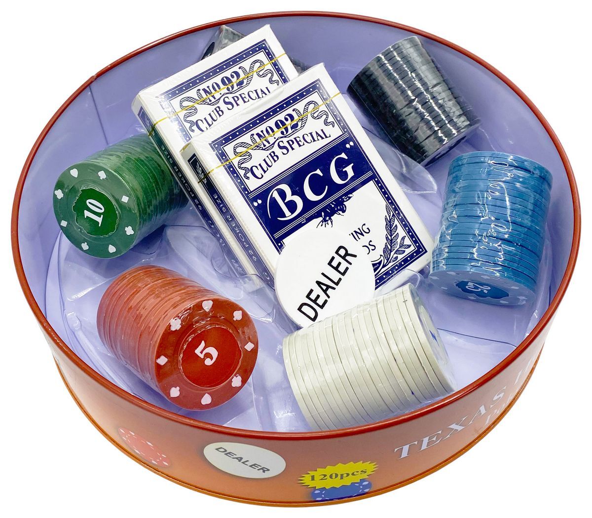 Покерный набор Premium Poker Holdem Light в жестяной коробке, 120 фишек с номиналом, карты + сукно