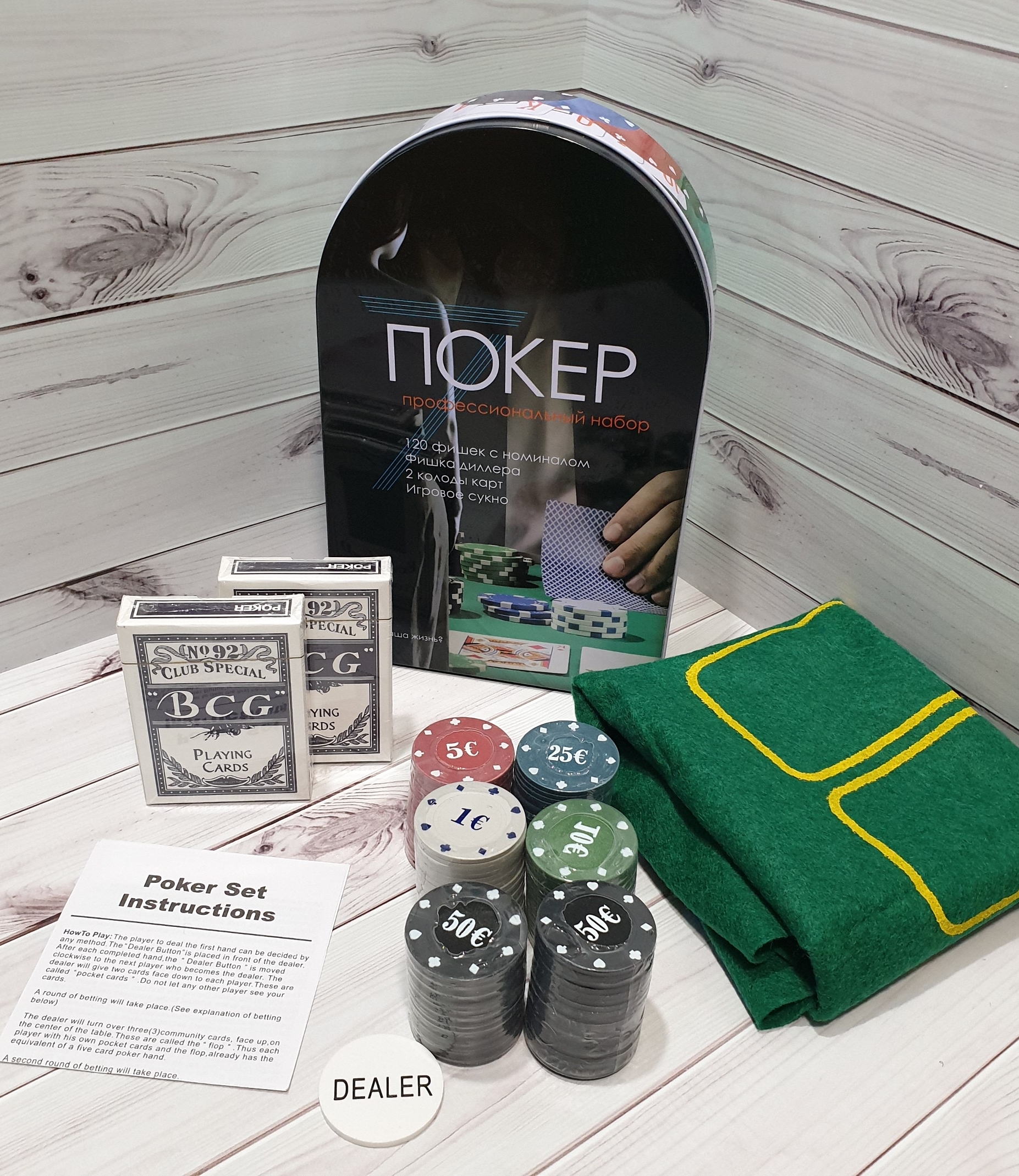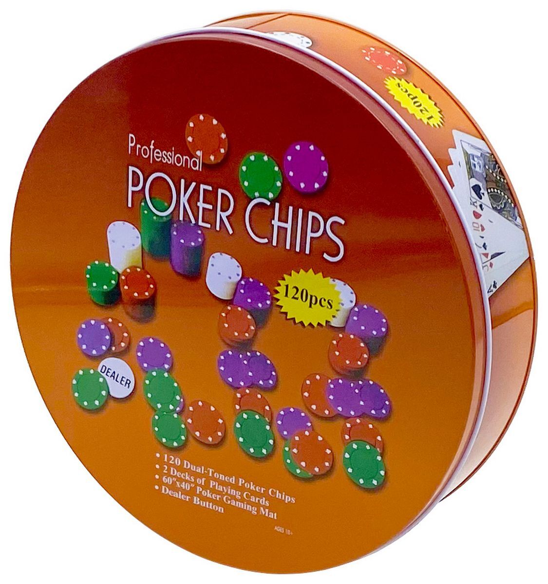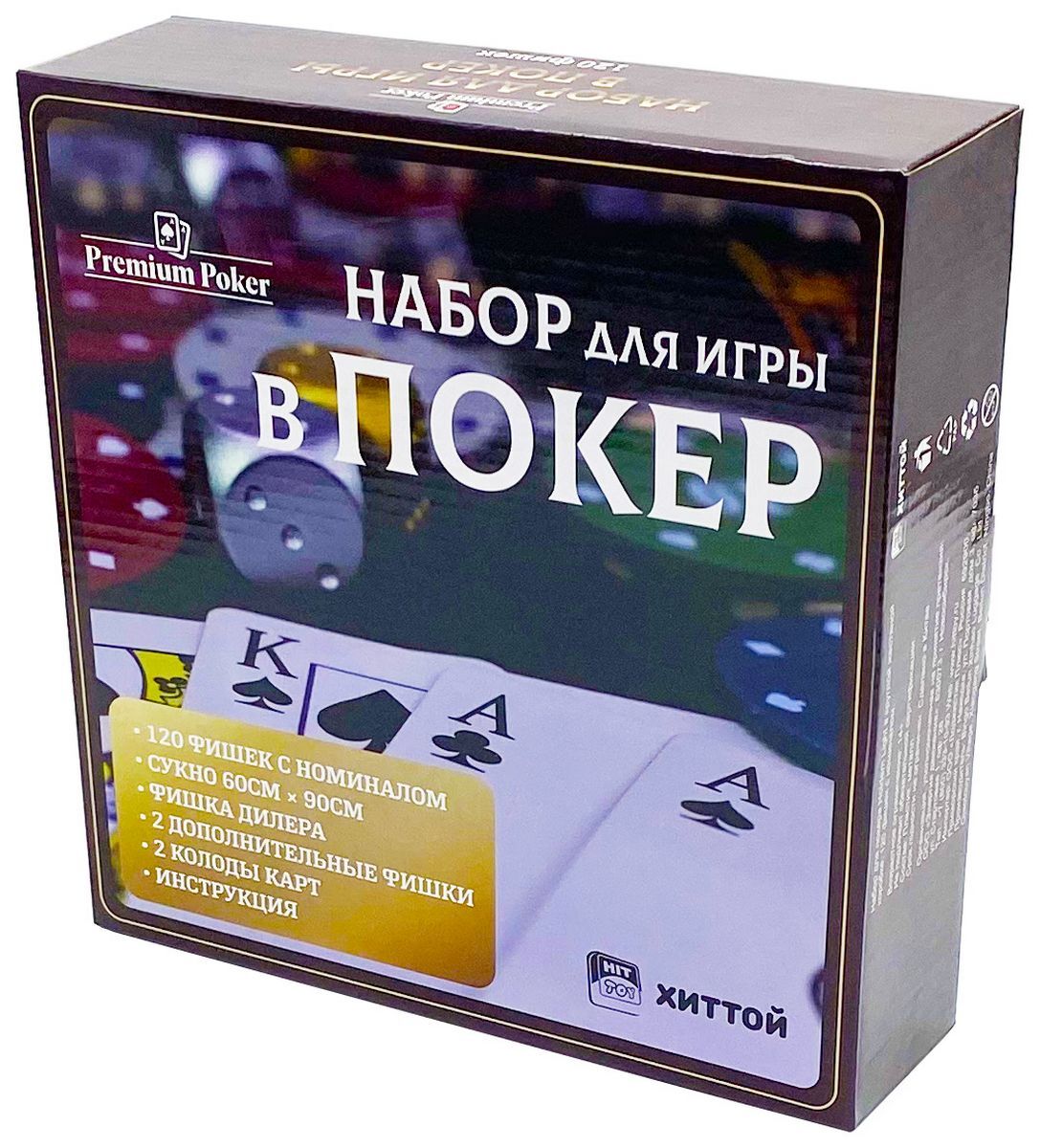 Покерный набор Premium Poker Holdem Light в жестяной коробке, 120 фишек с номиналом, карты + сукно