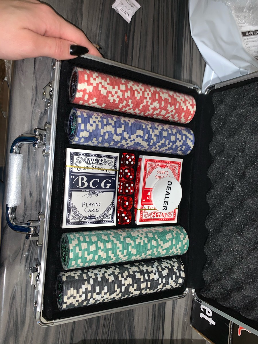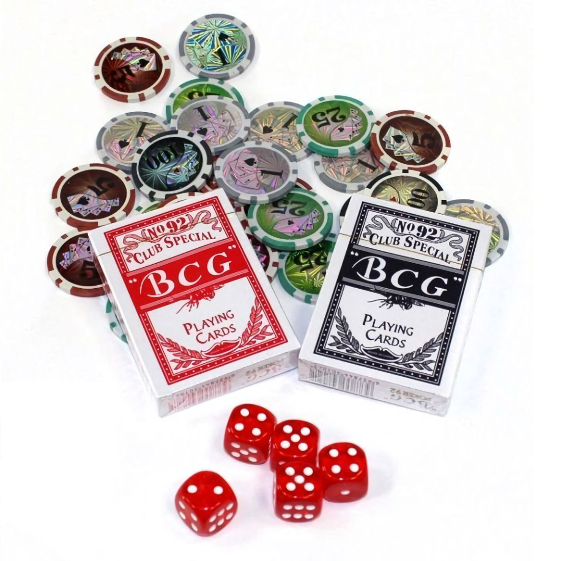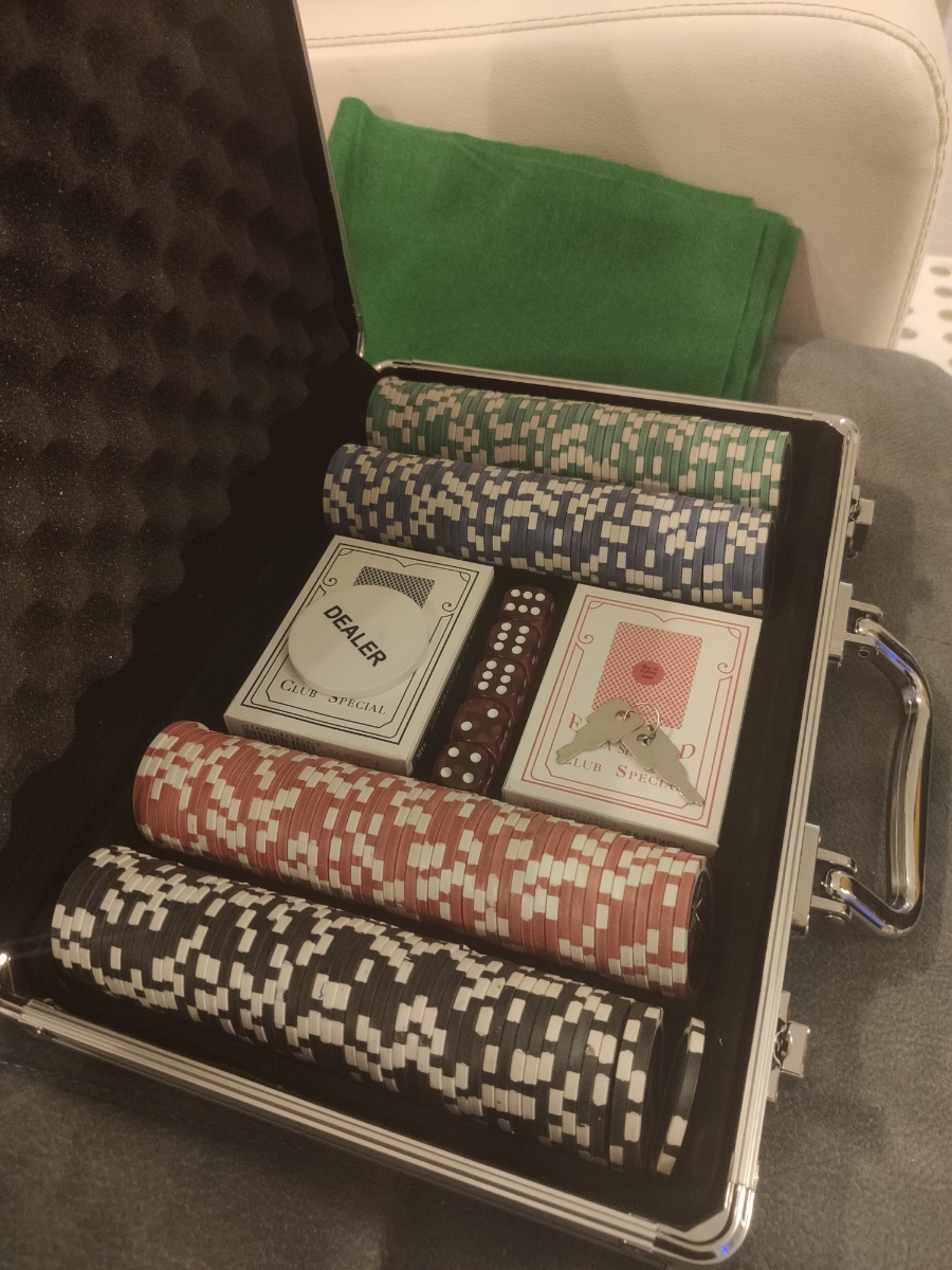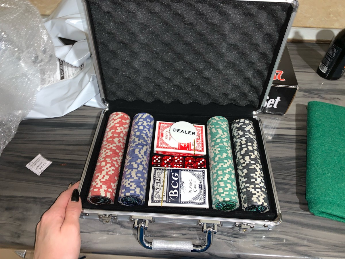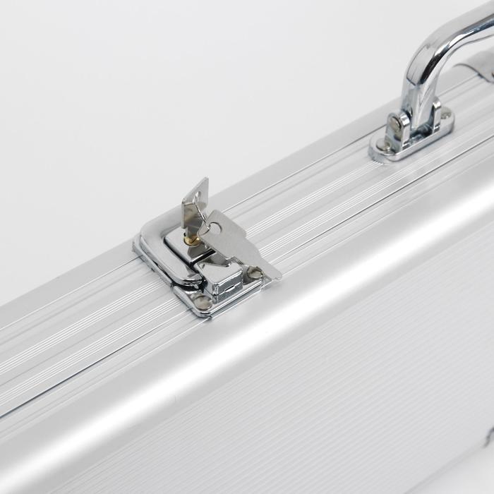 Покер в металлическом кейсе карты 2 колоды, фишки 100 шт без номинала, 5 кубиков, 20*20 см