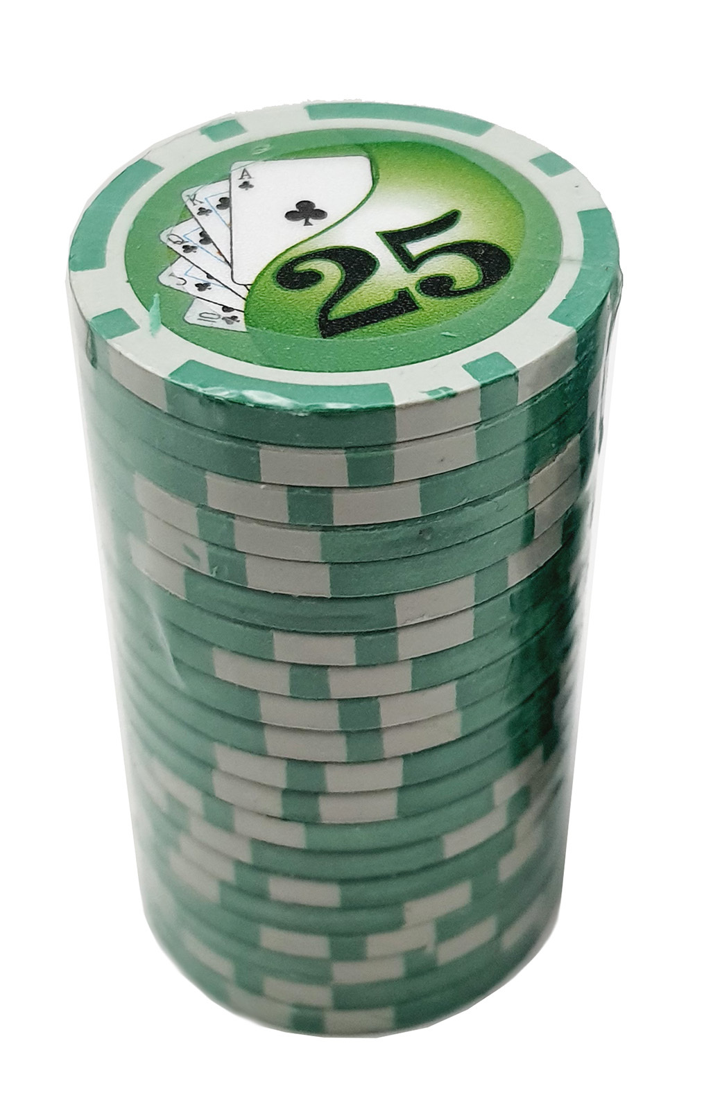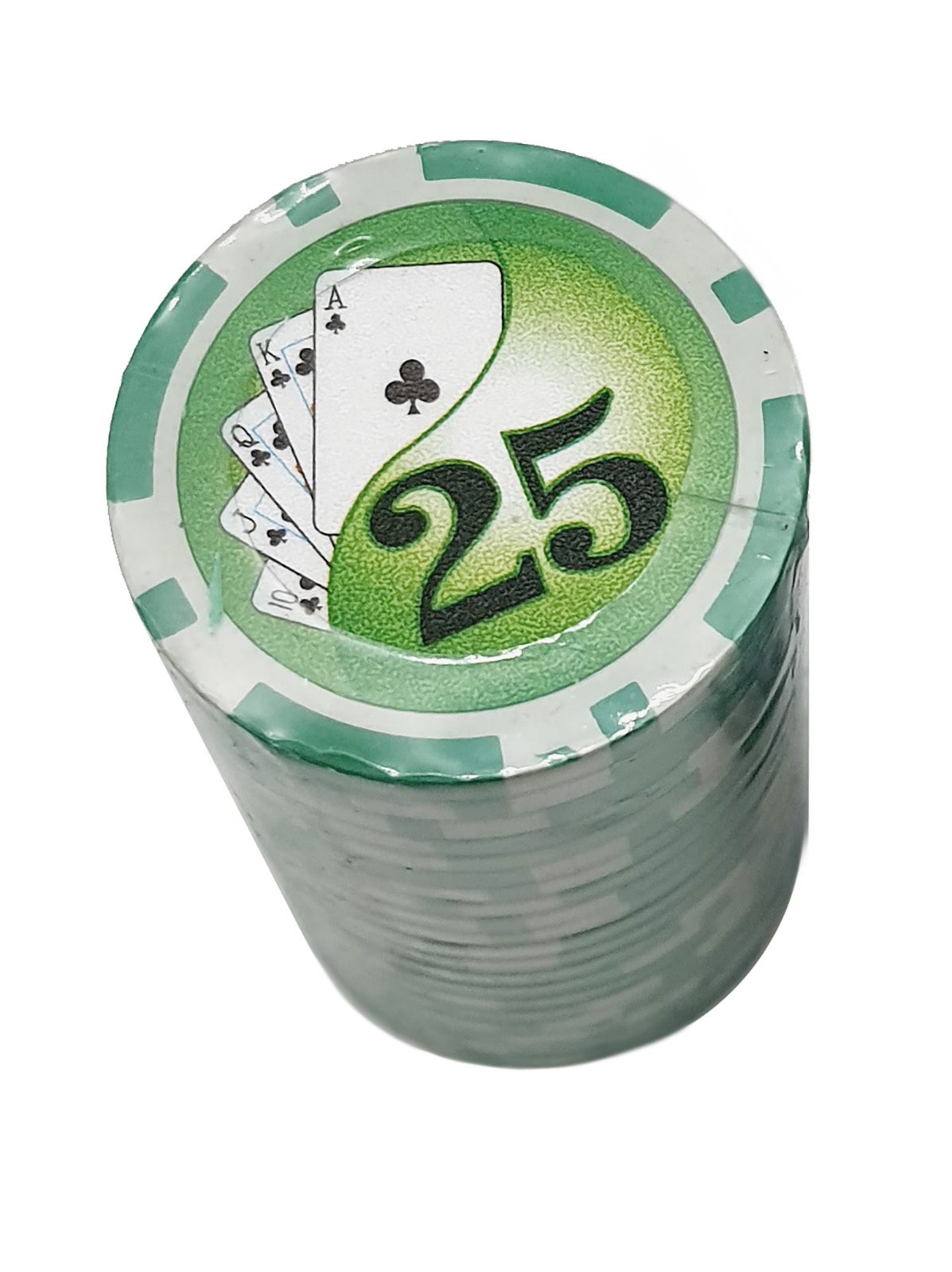 Фишки для покера с номиналом "25", цвет зеленый, 20 штук