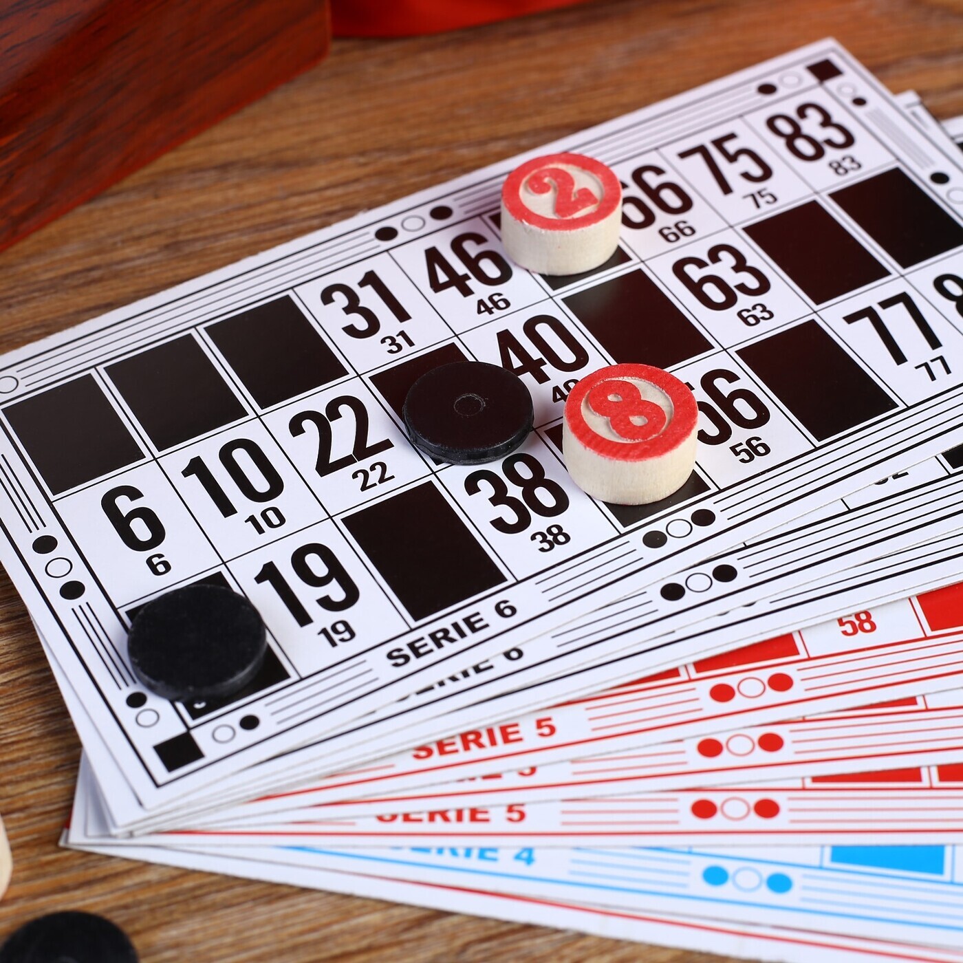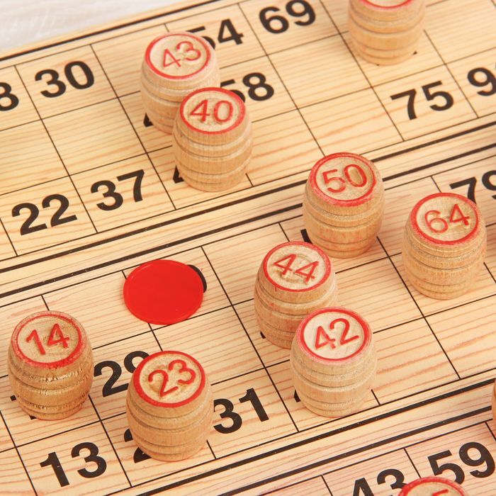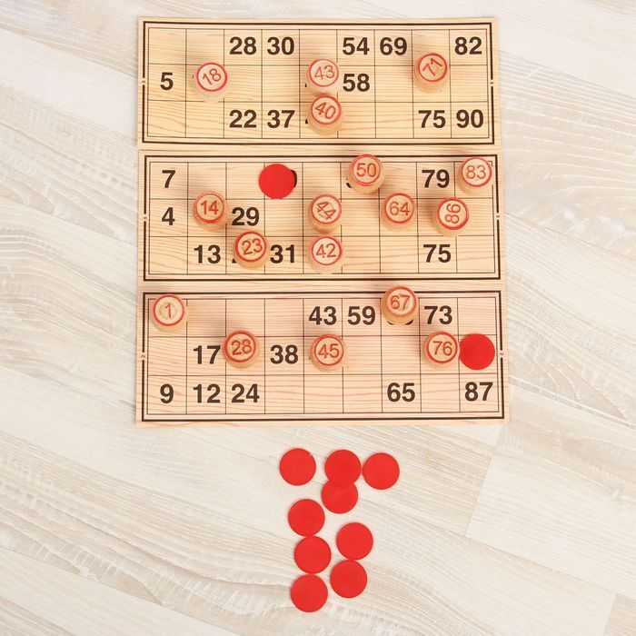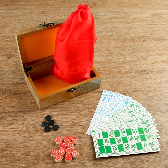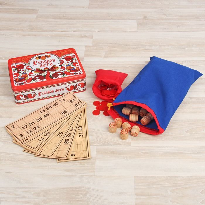 Лото русское с деревянными бочонками и пластиковыми фишками в картонной коробке
