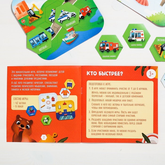 Лото Транспорт 42 фишки, 7 карточек: 22,5 13,5 5 см