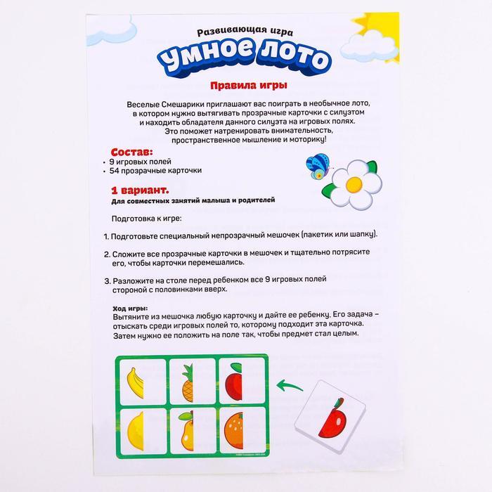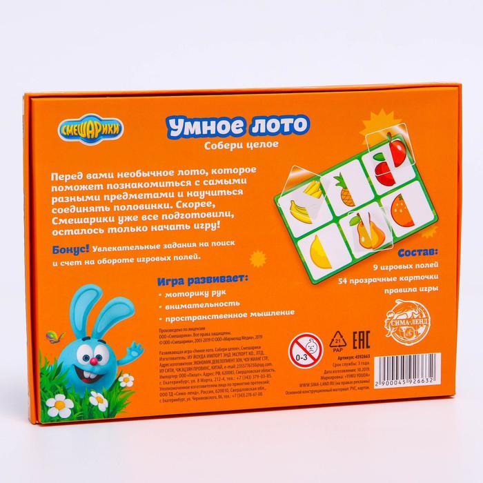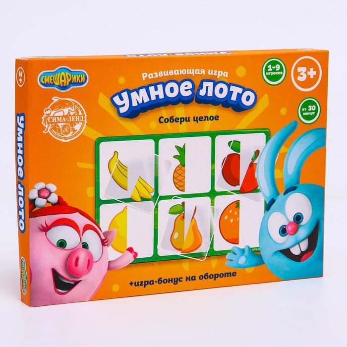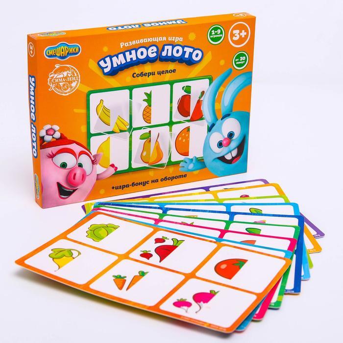 Умное лото Изучаем фрукты, овощи и предметы , собери целое, СМЕШАРИКИ