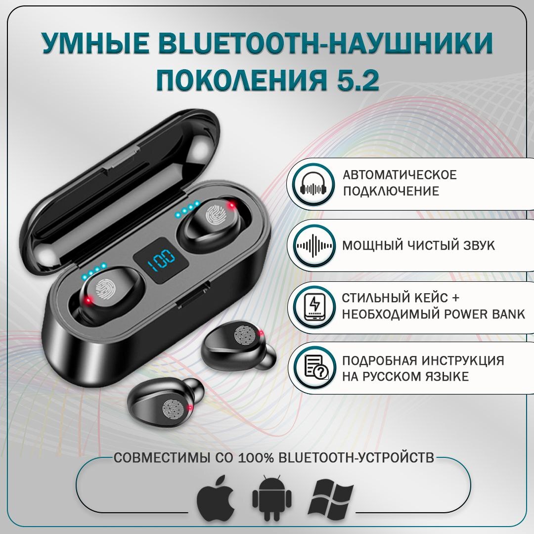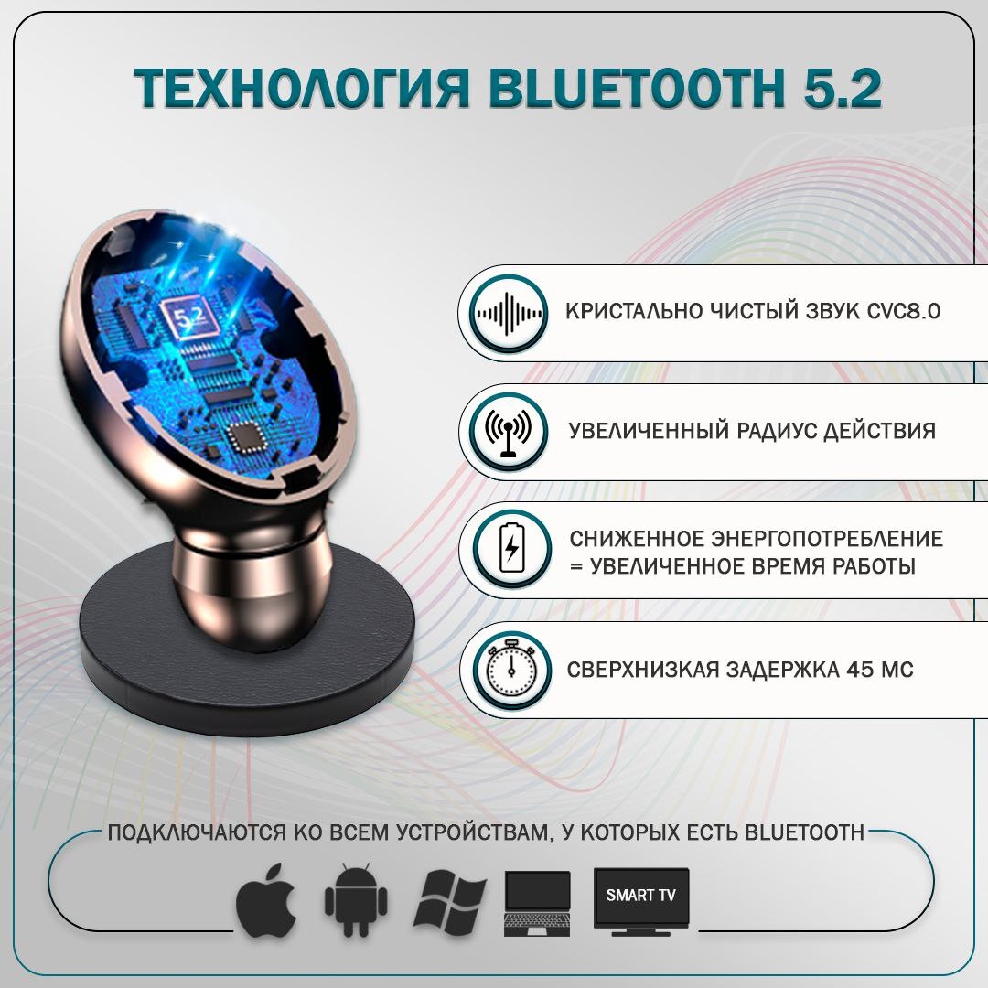 Беспроводная Bluetooth-гарнитура 5.2 Бинауральные мини-наушники Спорт Android OPPO Xiaomi Universal