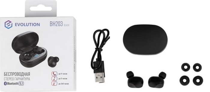 Беспроводные наушники EVOLUTION BH203 BLACK