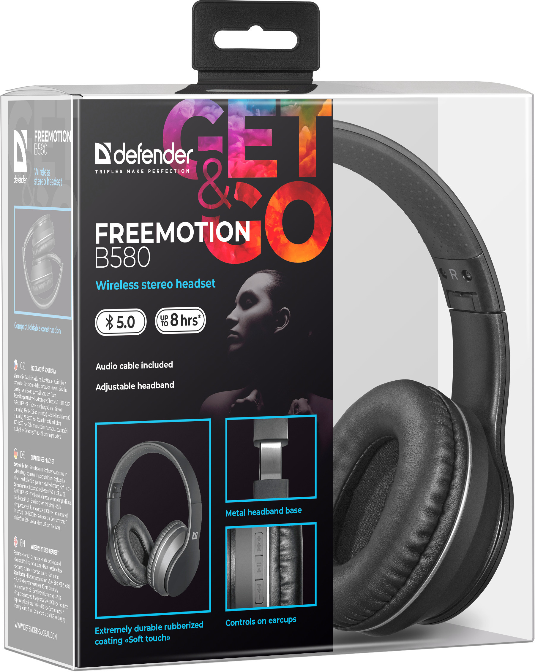 Беспроводные наушники накладные Defender FreeMotion B580 черный, Bluetooth