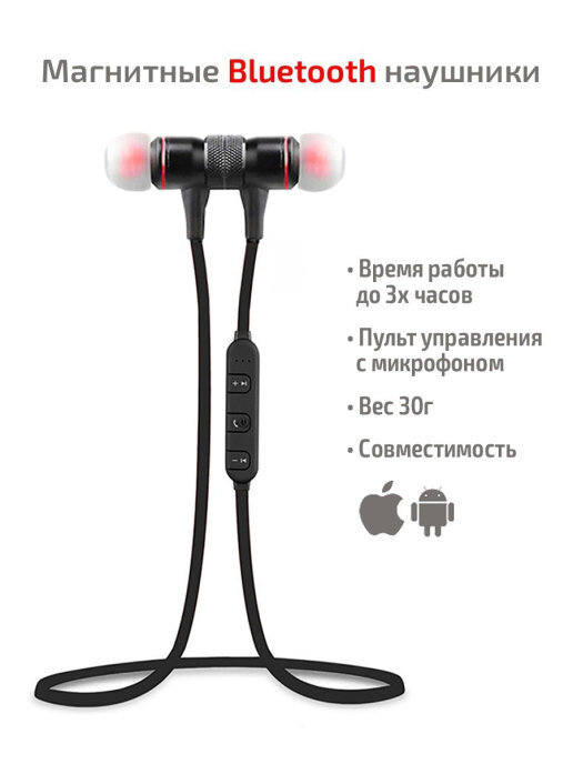 Беспроводные наушники с микрофоном . Наушники блютуз / спортивная гарнитура Bluetooth . Черный