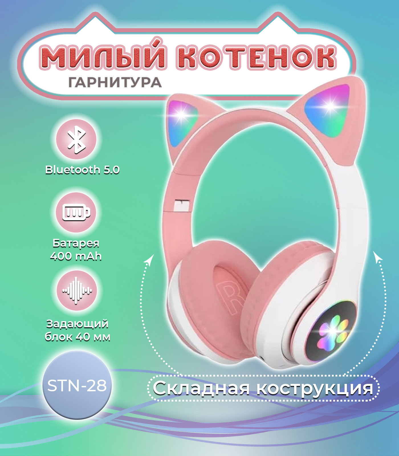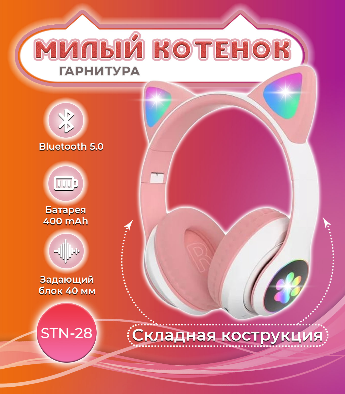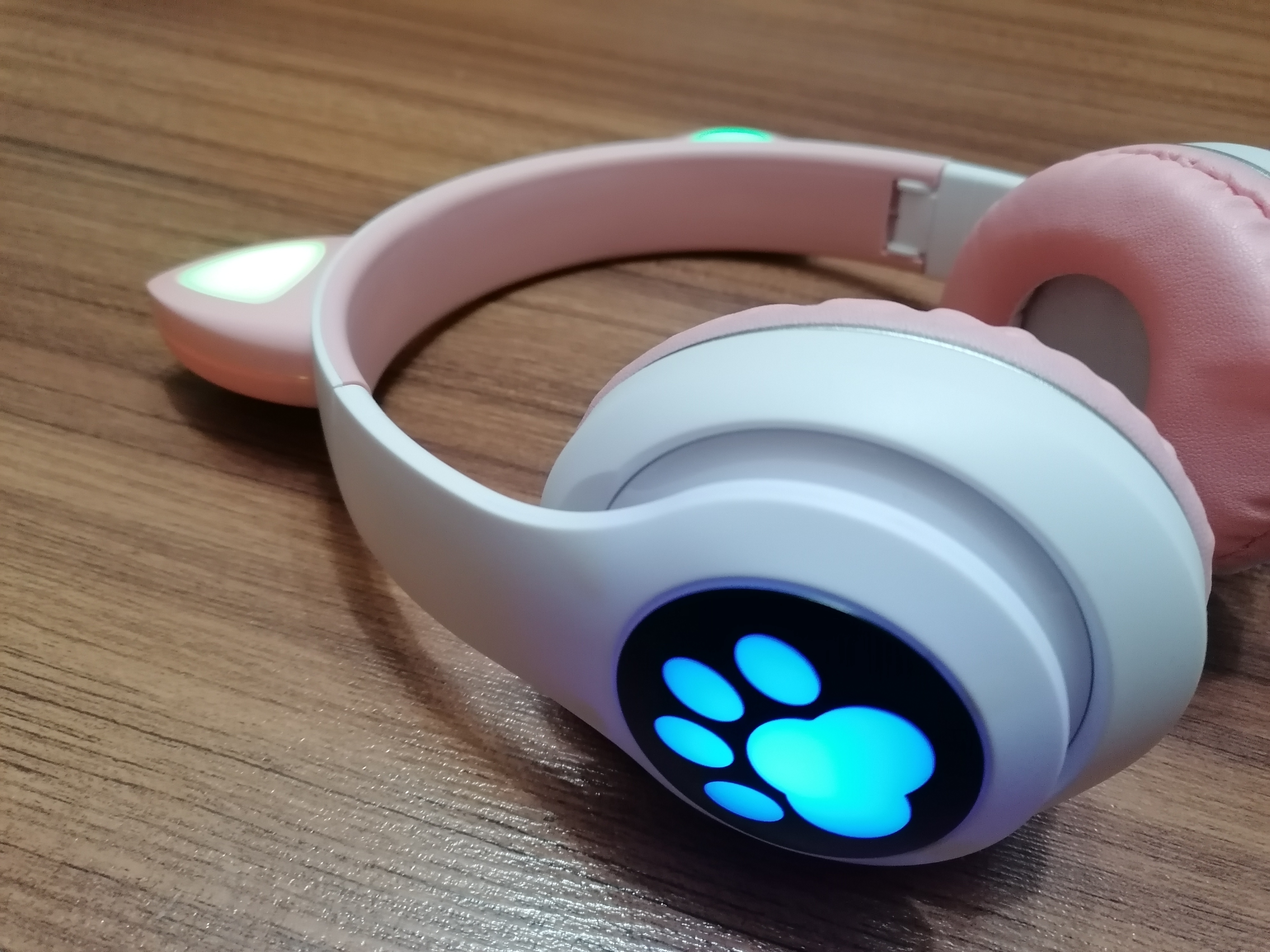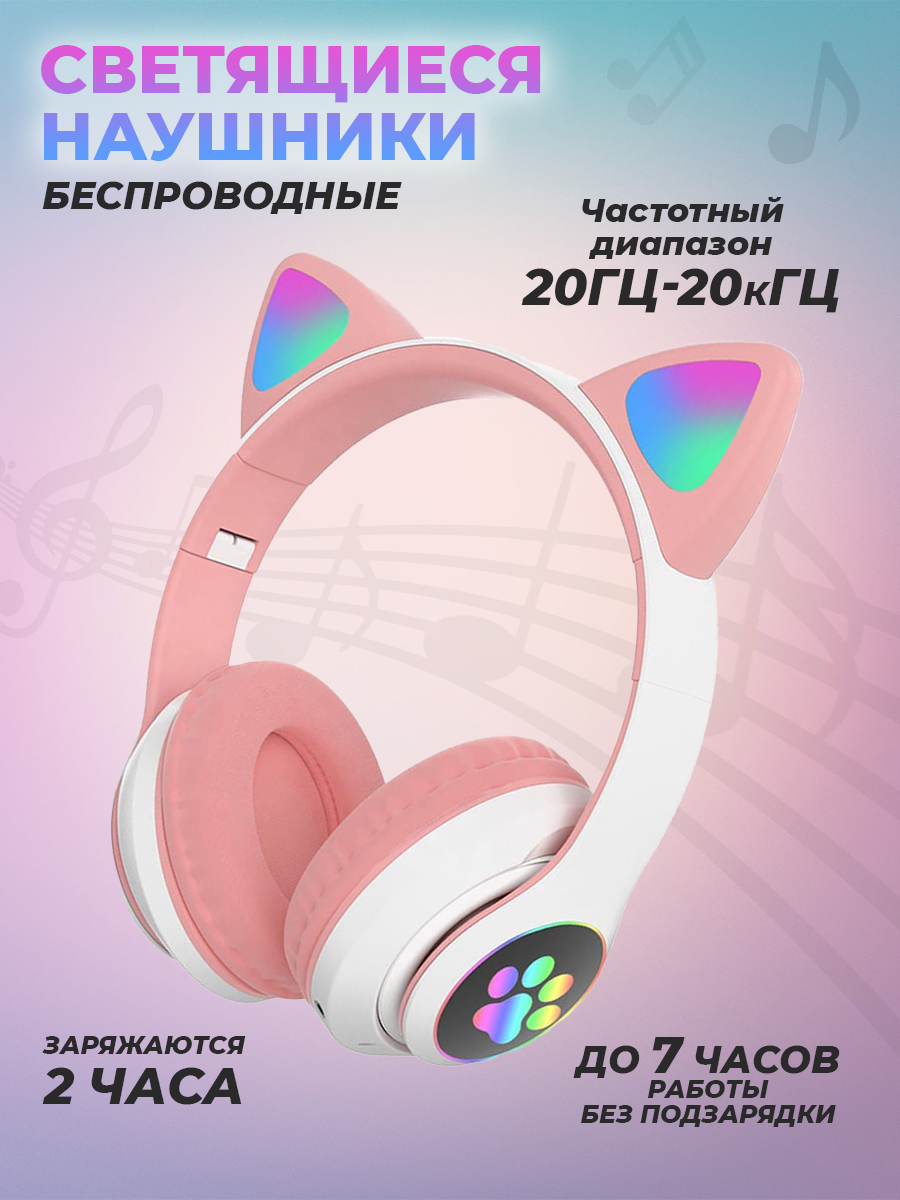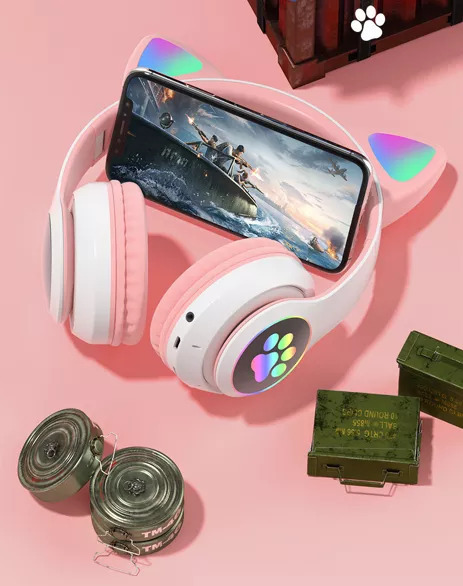 Беспроводные Bluetooth наушники светящиеся с ушками