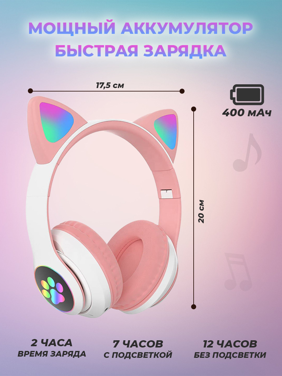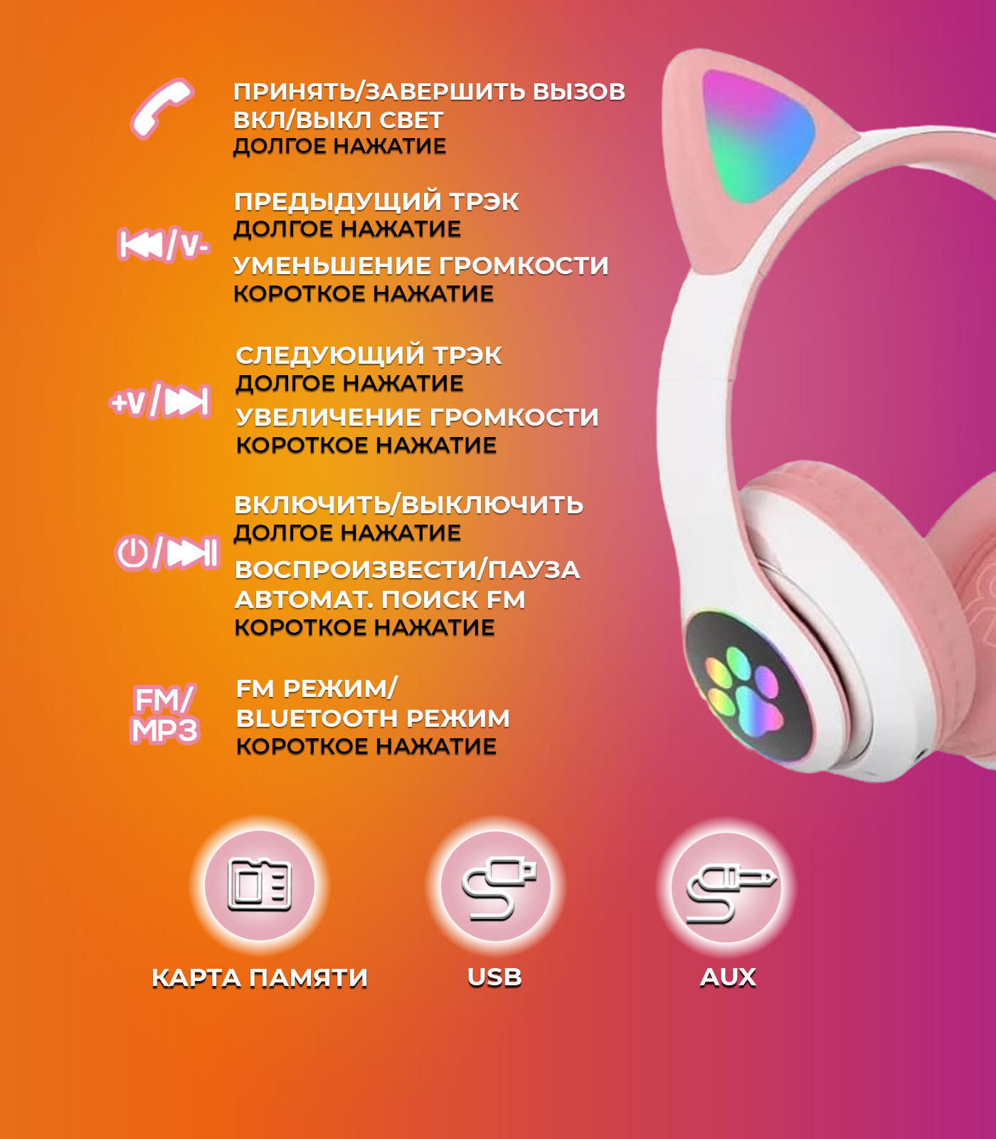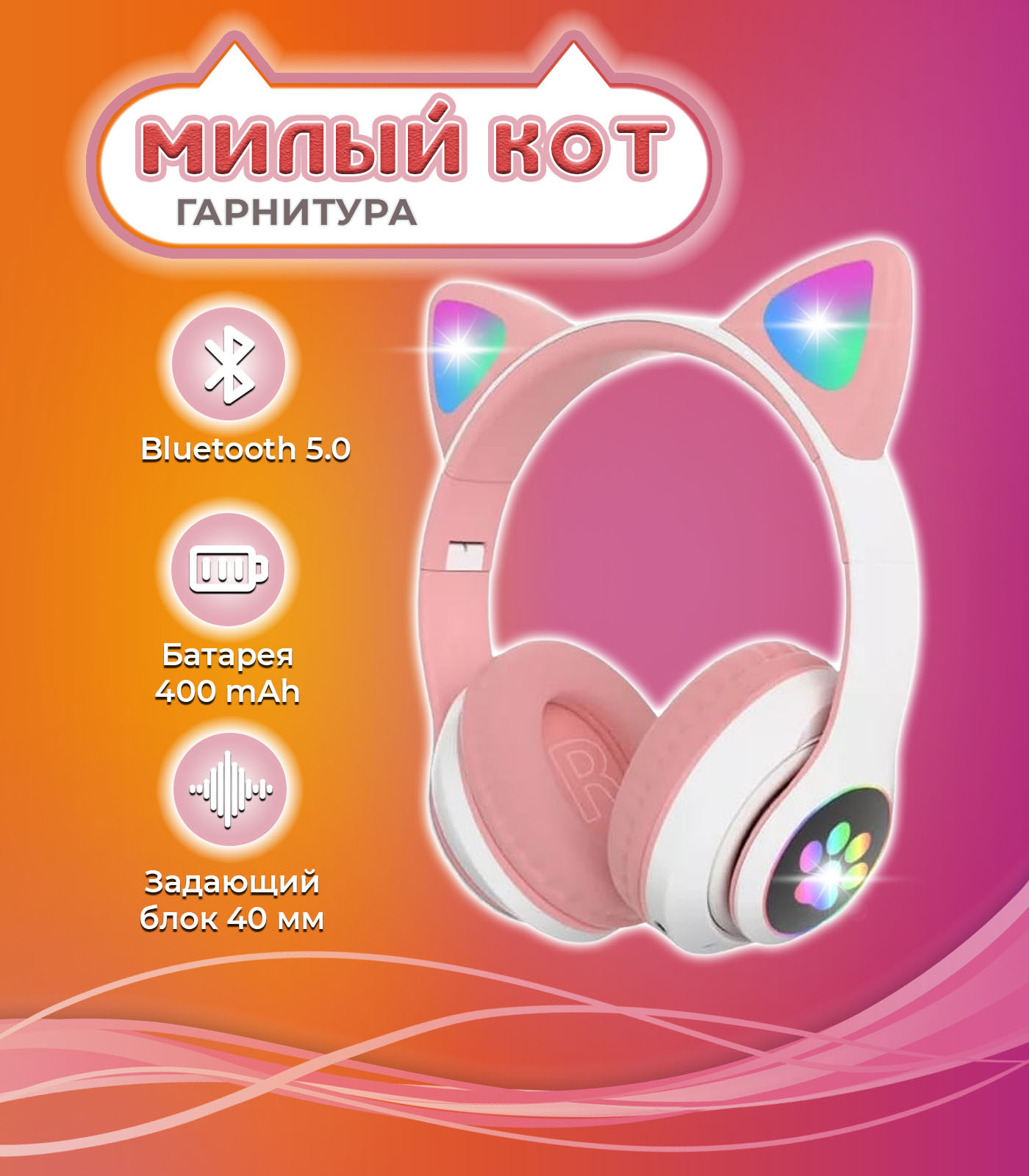 Беспроводные Bluetooth наушники светящиеся с ушками