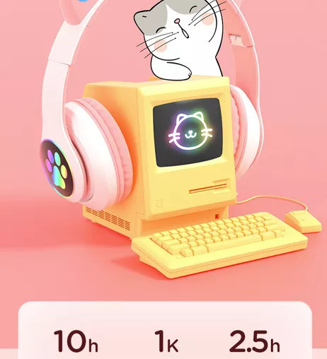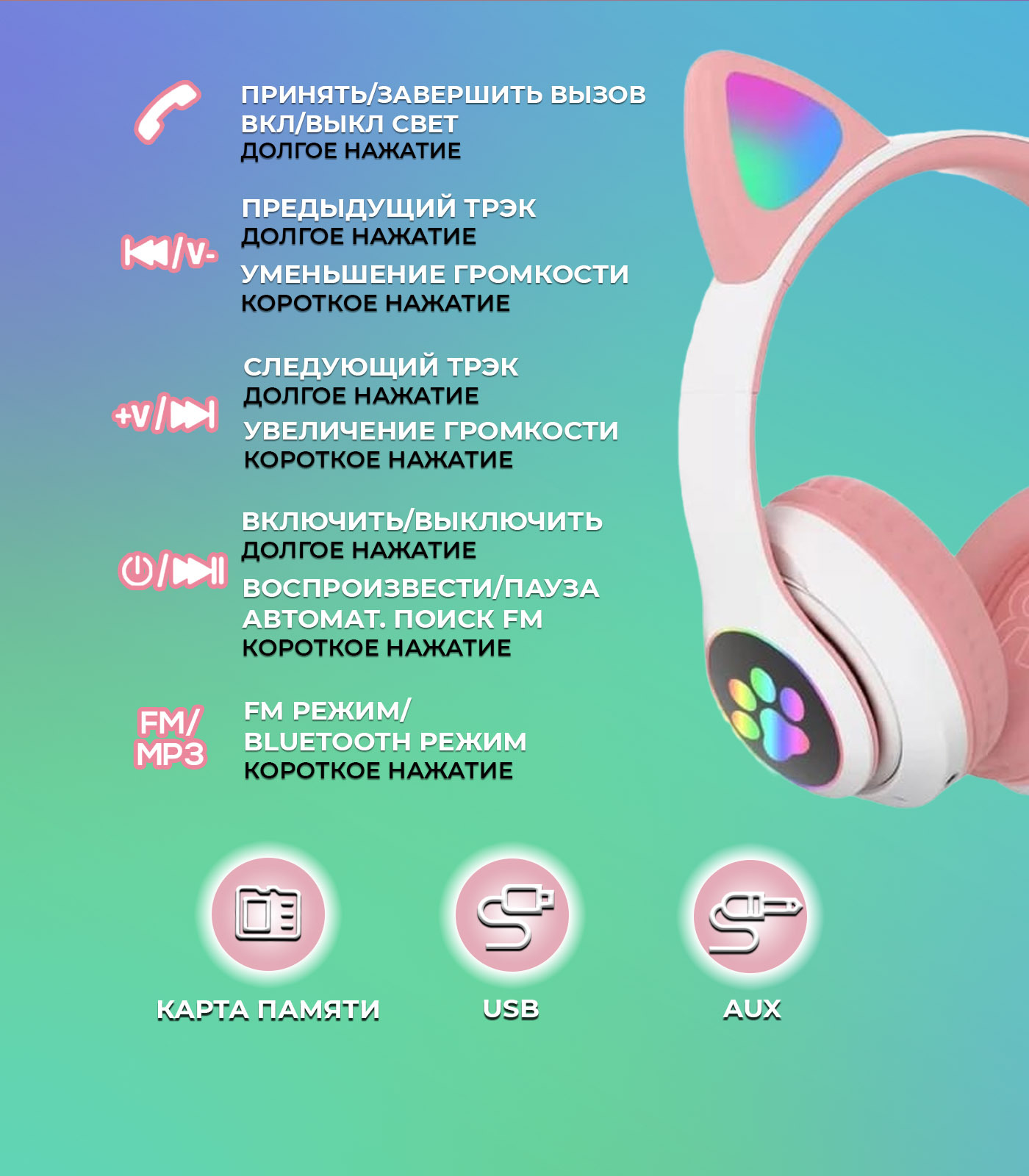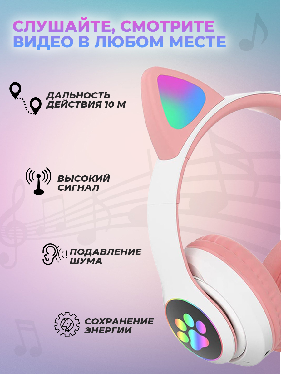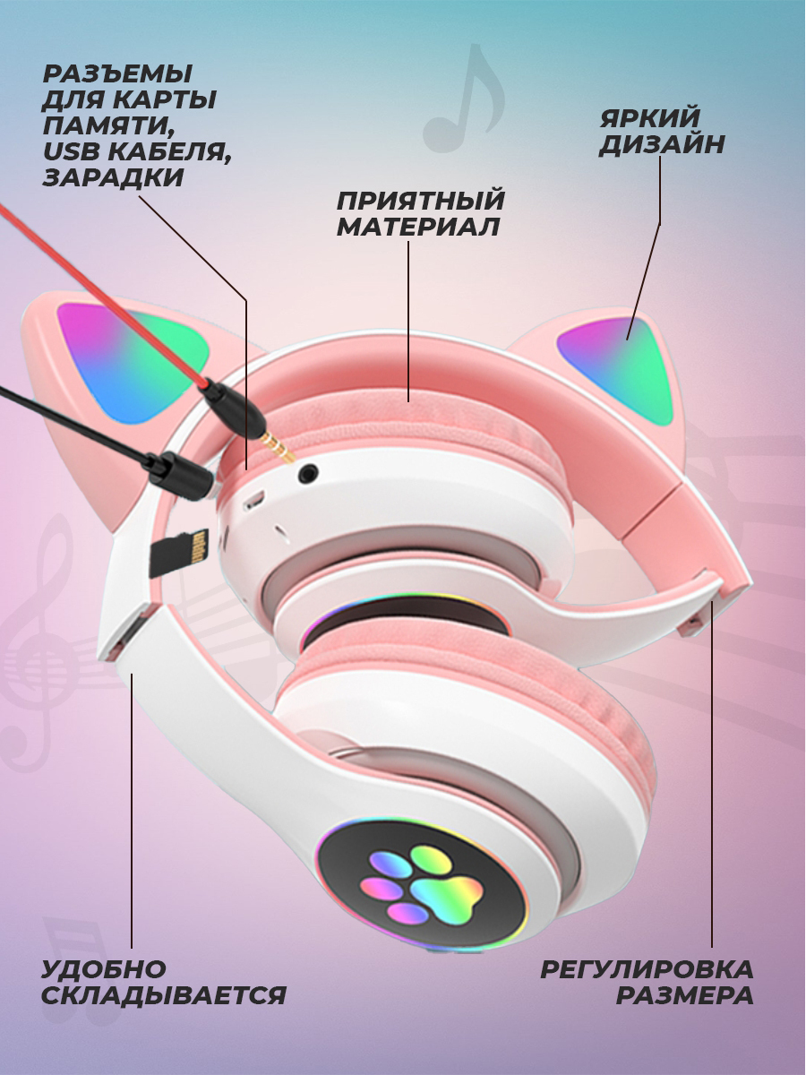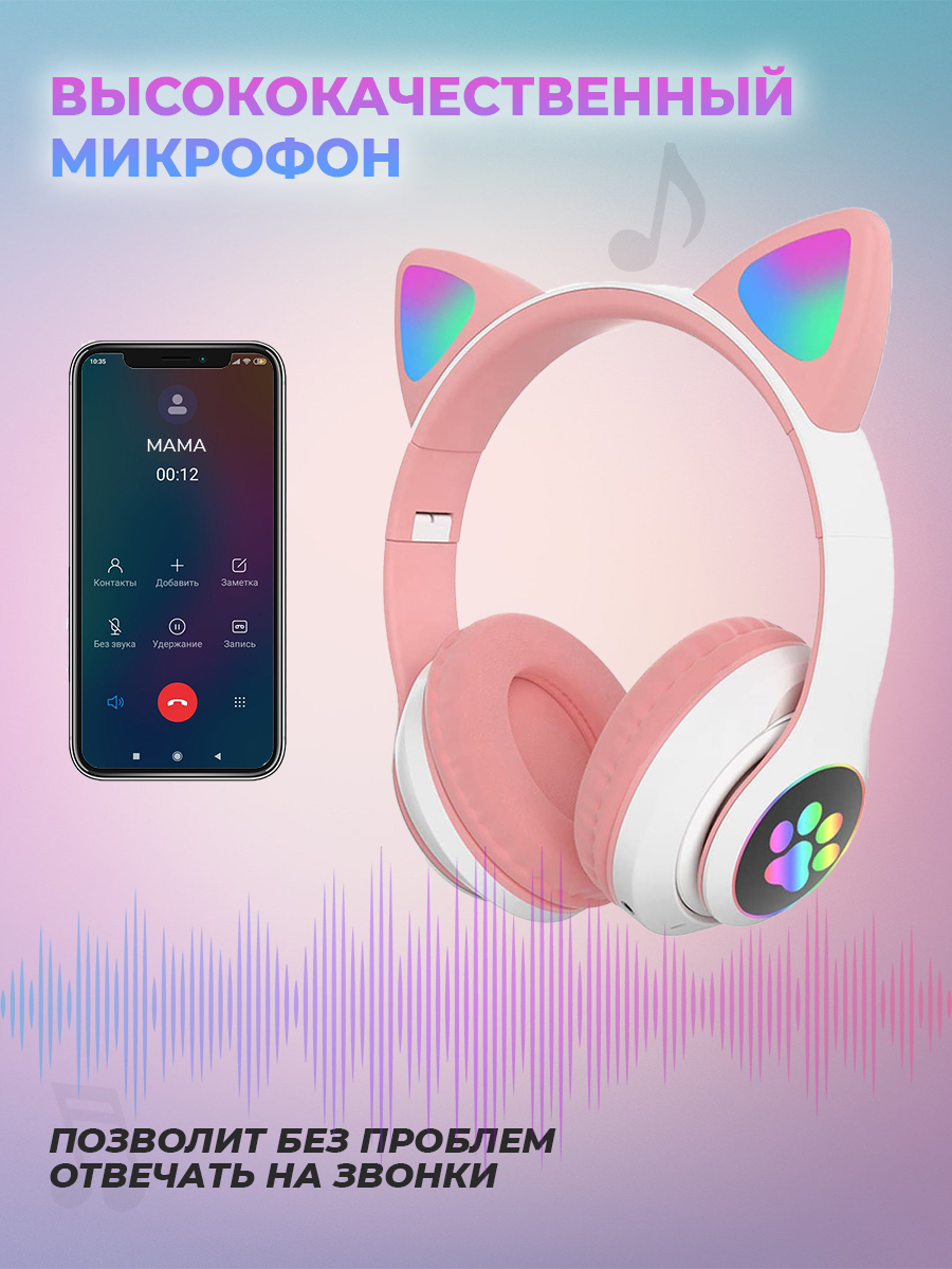 Беспроводные Bluetooth наушники светящиеся с ушками