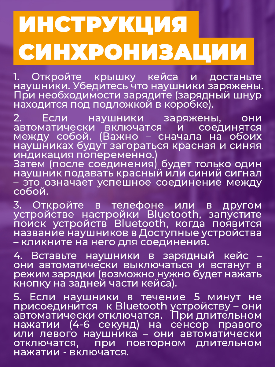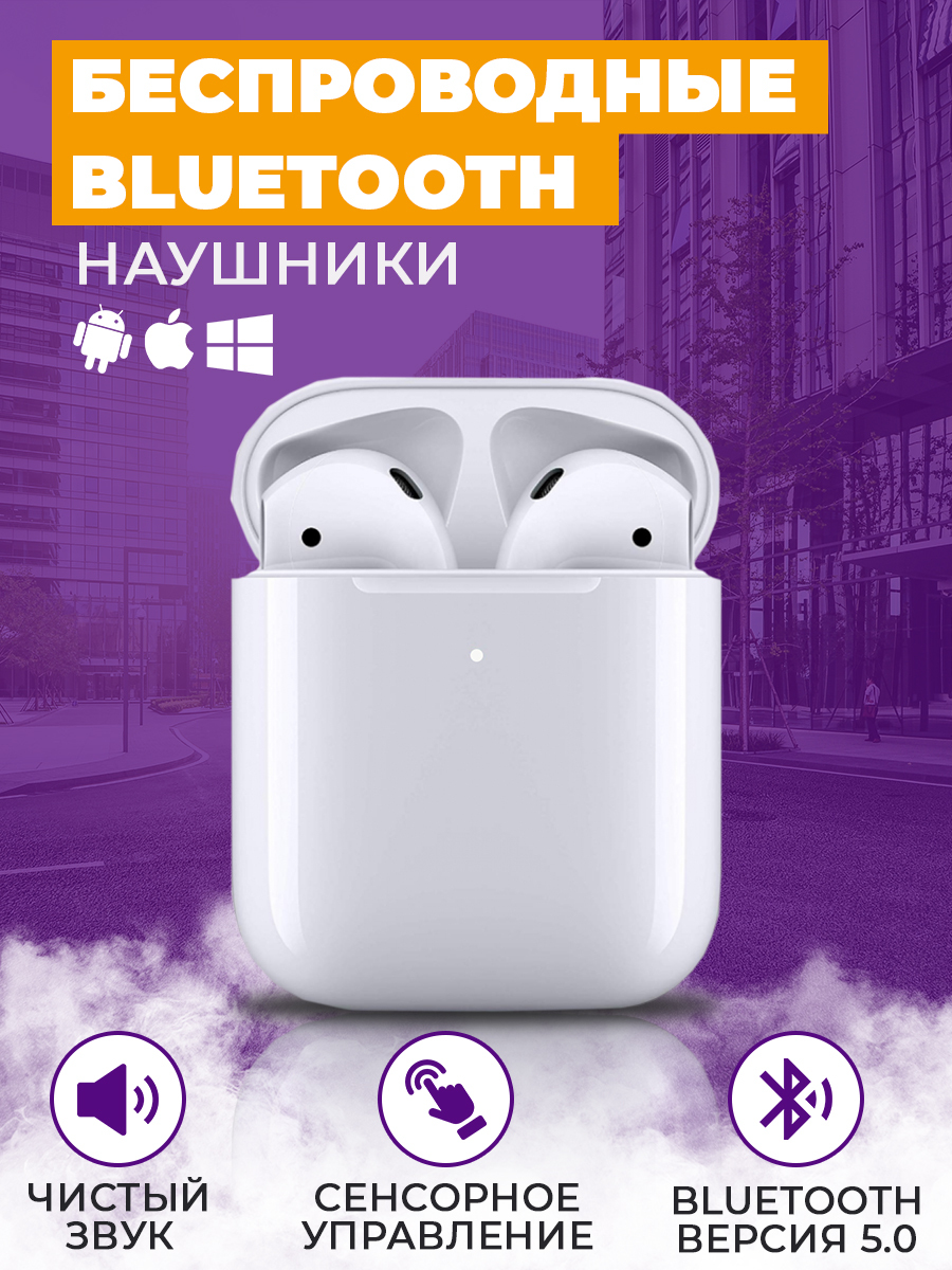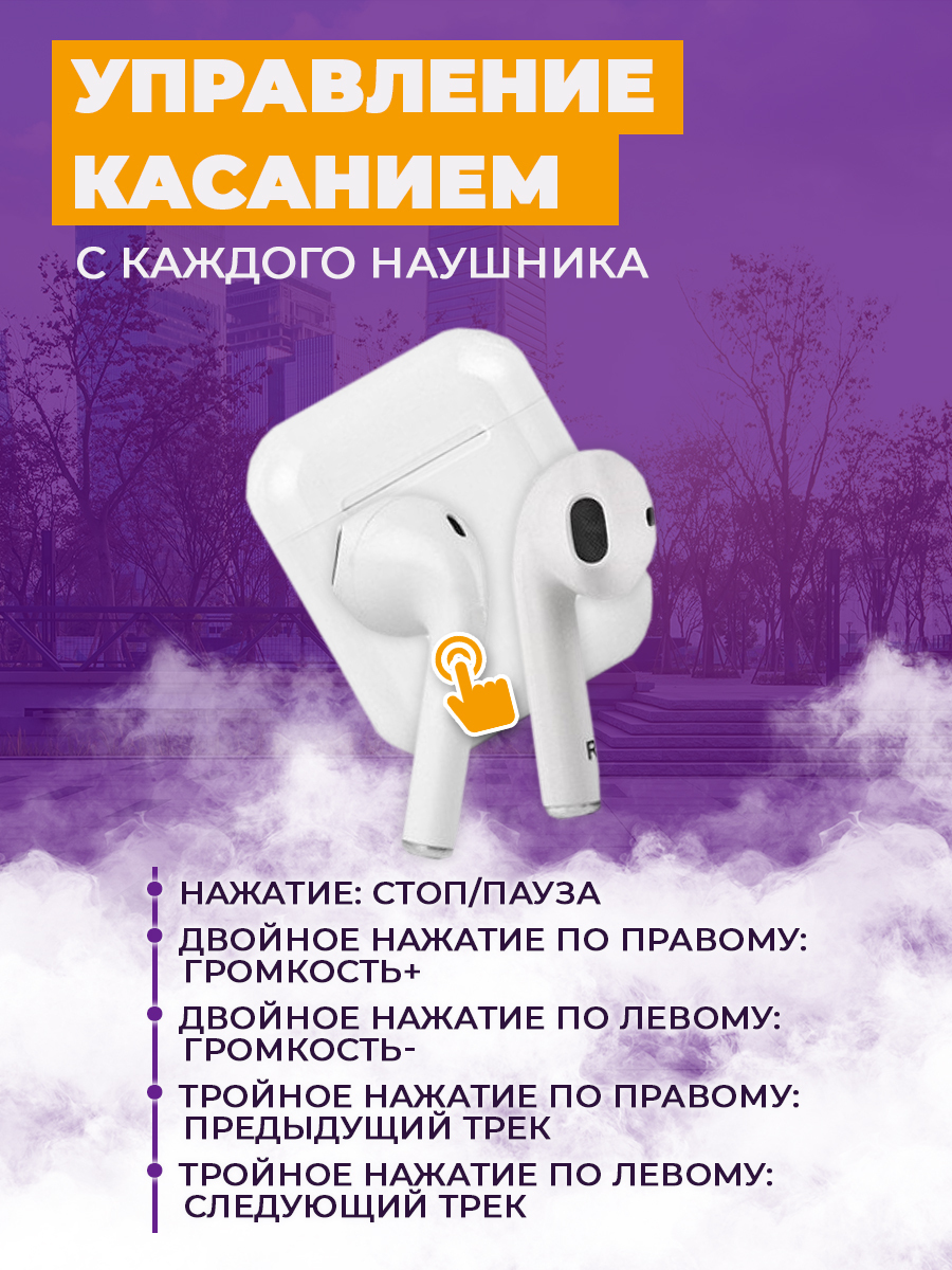 Беспроводные наушники с микрофоном . Cенсорное управление. Bluetooth 5.0. Для iPhone / Android .