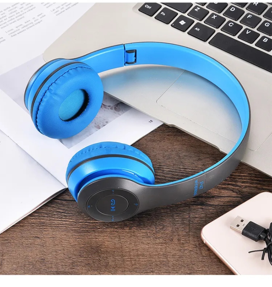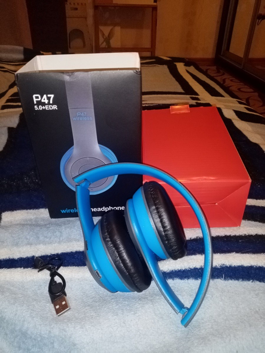 Bluetooth наушники P47 накладные (BT5.0 / FM / microSD), микрофон, синий