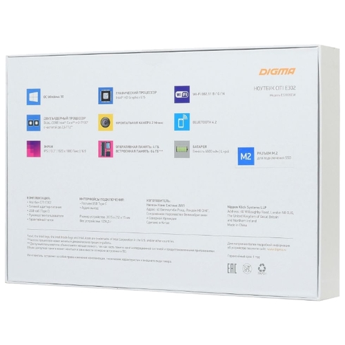 Ноутбук Digma CITI E302 (Intel Core m3 7Y30 1000 MHz/13.3"/1920x1080/4GB/64GB SSD/DVD нет/Intel HD Graphics 615/Wi-Fi/Bluetooth/Windows 10 Home)