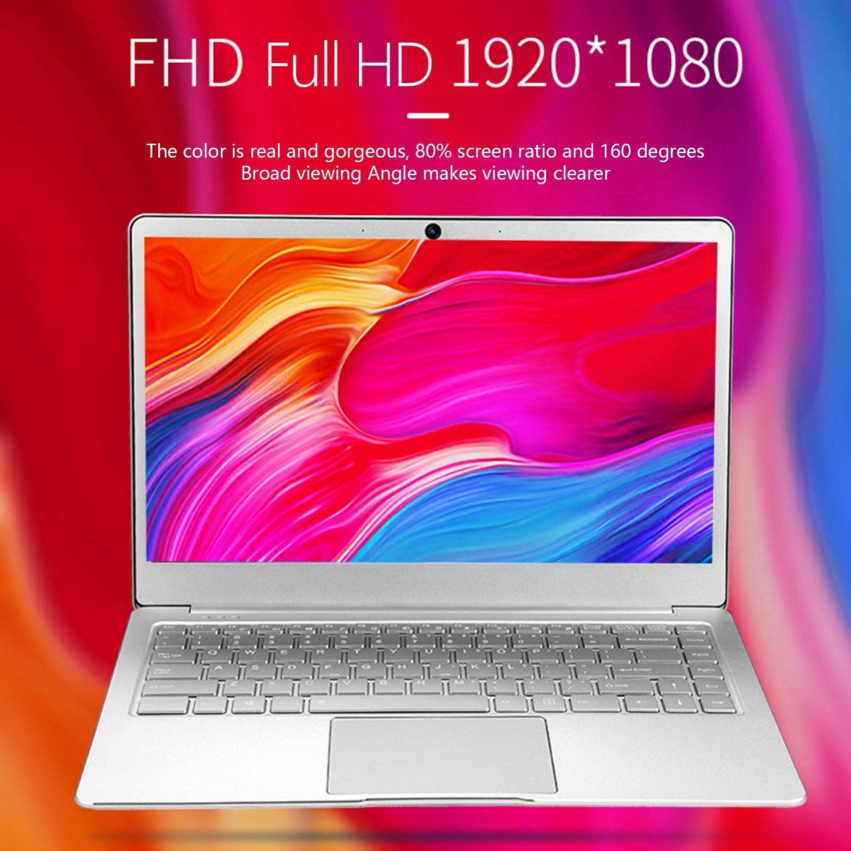 Ноутбук 14 1 дюйма ноутбука J4105 1920x1080 8G + 128G 2.4G + 5G Bluetooth 4.0 Win10 для офиса Silver Us Plug, Серебряный
