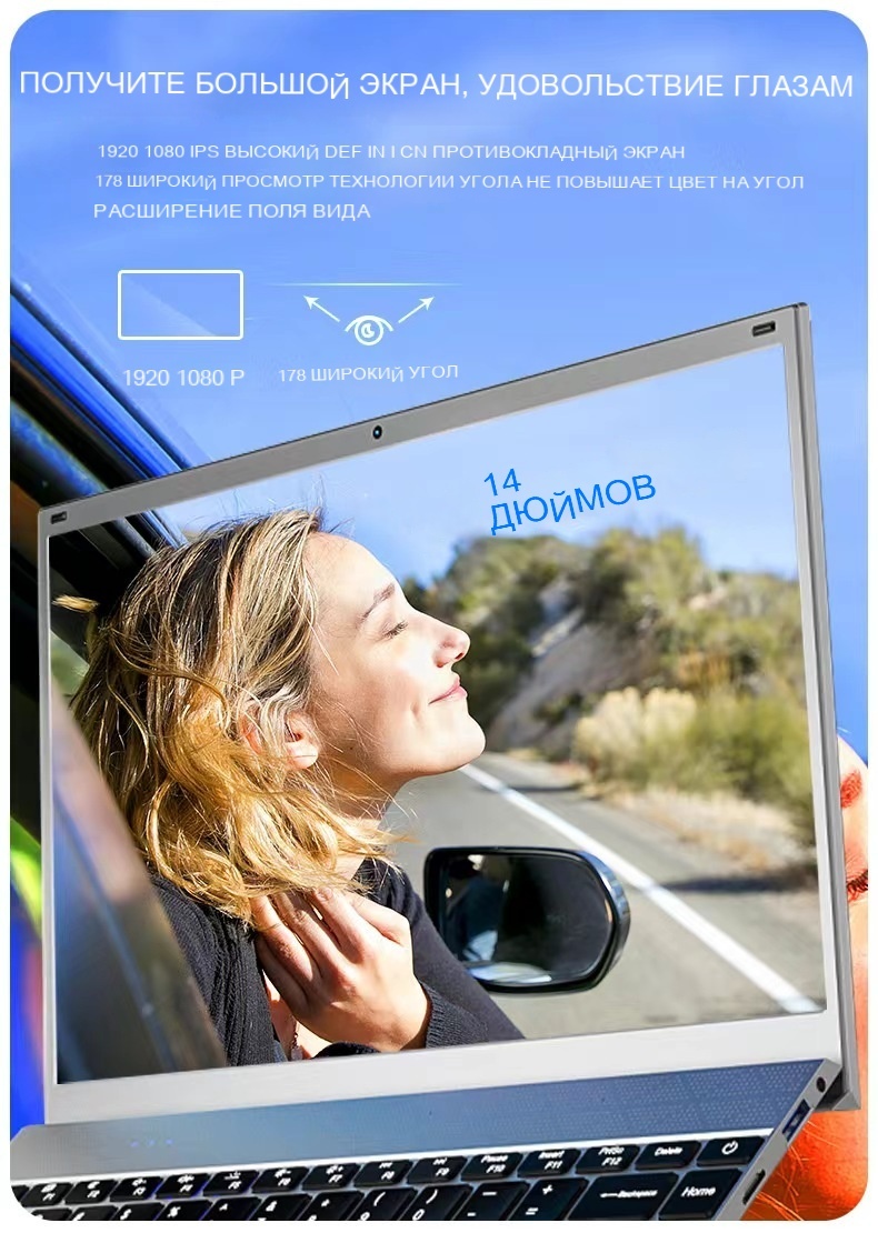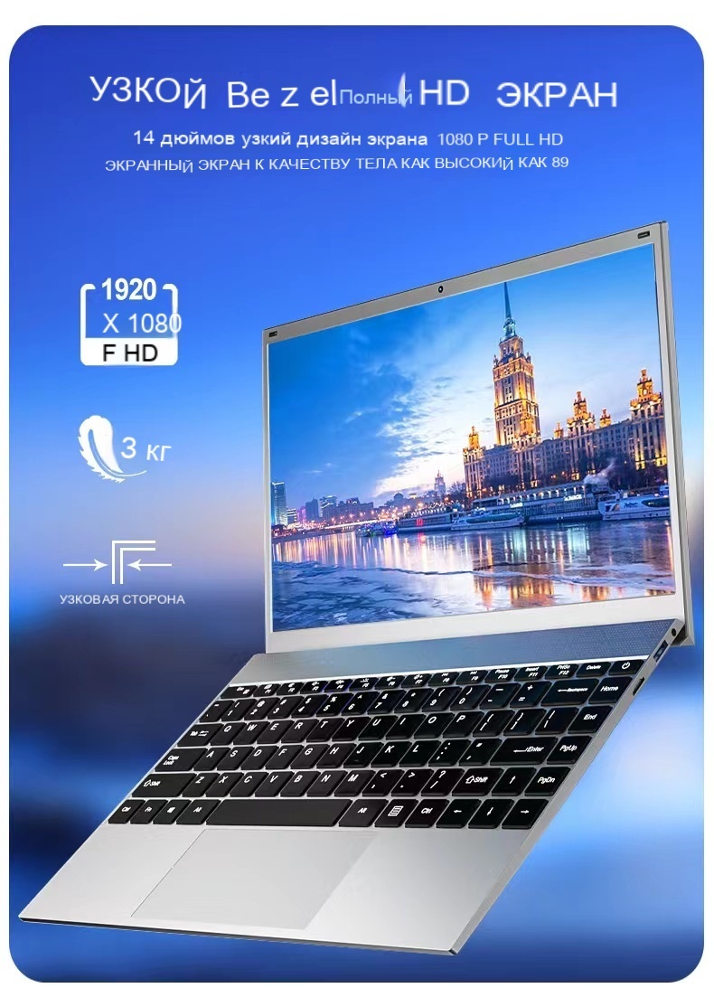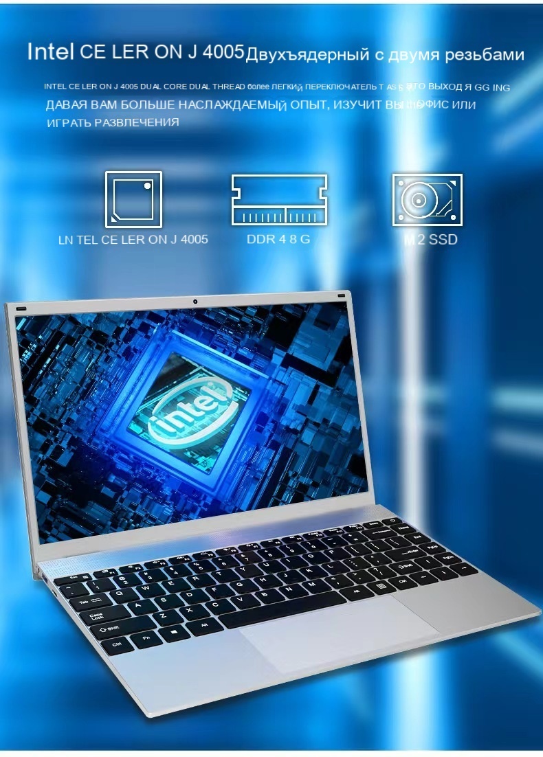 14" Ноутбук NC1431 (раскладка клавиатуры англ.+ наклейки с рус. буквами), Intel Celeron J3455 (1.5 ГГц), RAM 8 ГБ, SSD, Intel HD Graphics 400, Windows 10 Home
