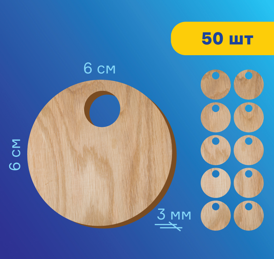 Номерки гардеробные без цифр жетоны / Форма "круг" / ушко 15 мм / 50 шт фанера 3 мм