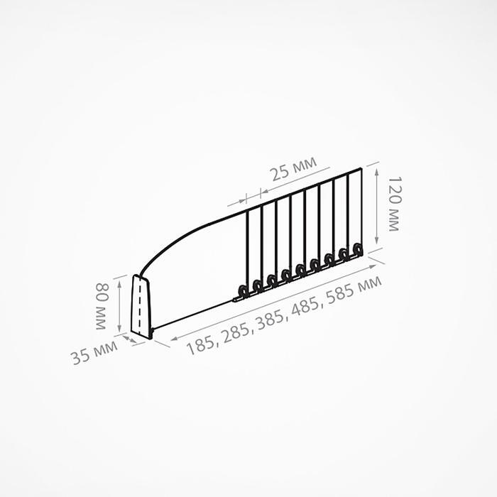 Пластиковый обламывающийся разделитель высотой 120 мм c перед огран 80 мм, L 285-485 мм