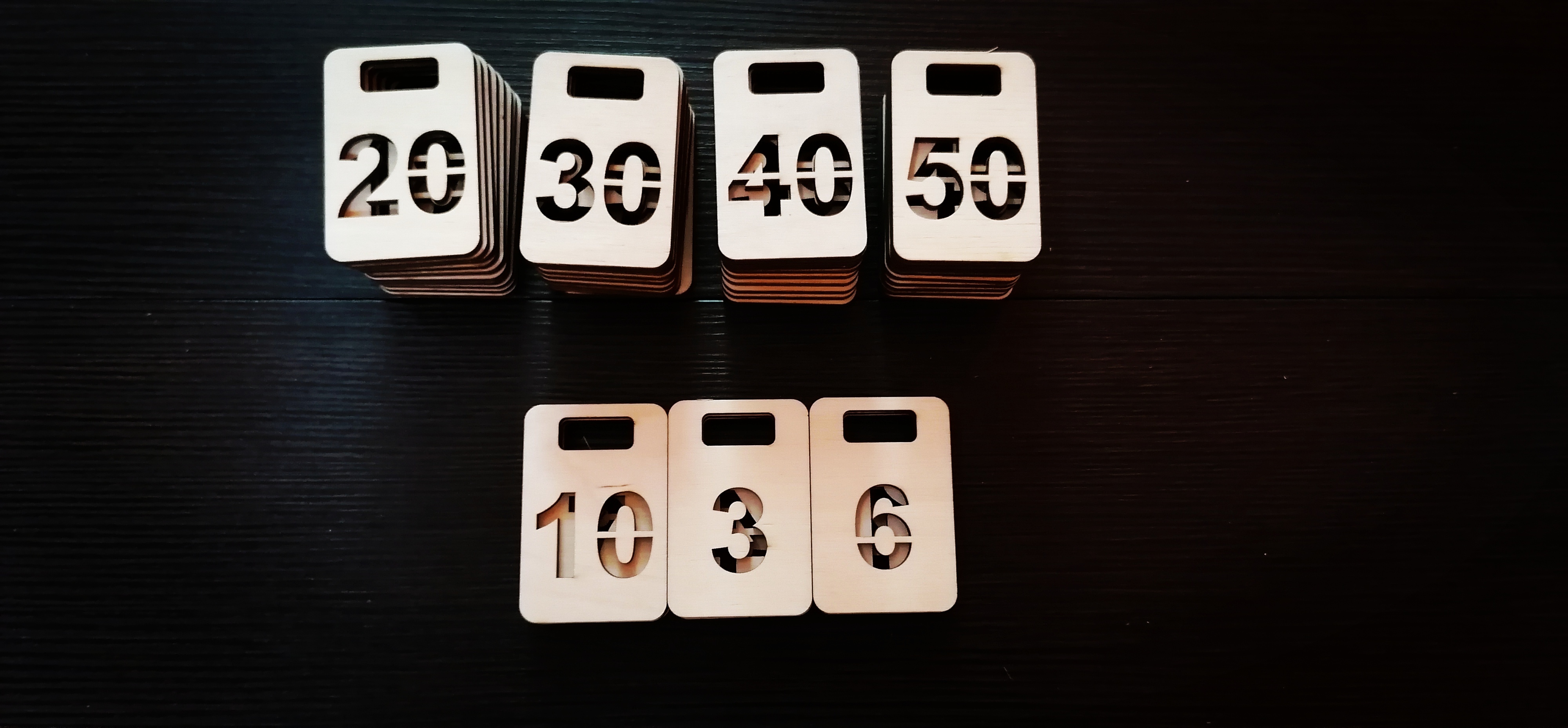 Номерки Гардеробные от 1 до 50 / прямоугольные / ушко 15 мм / фанера 3 мм