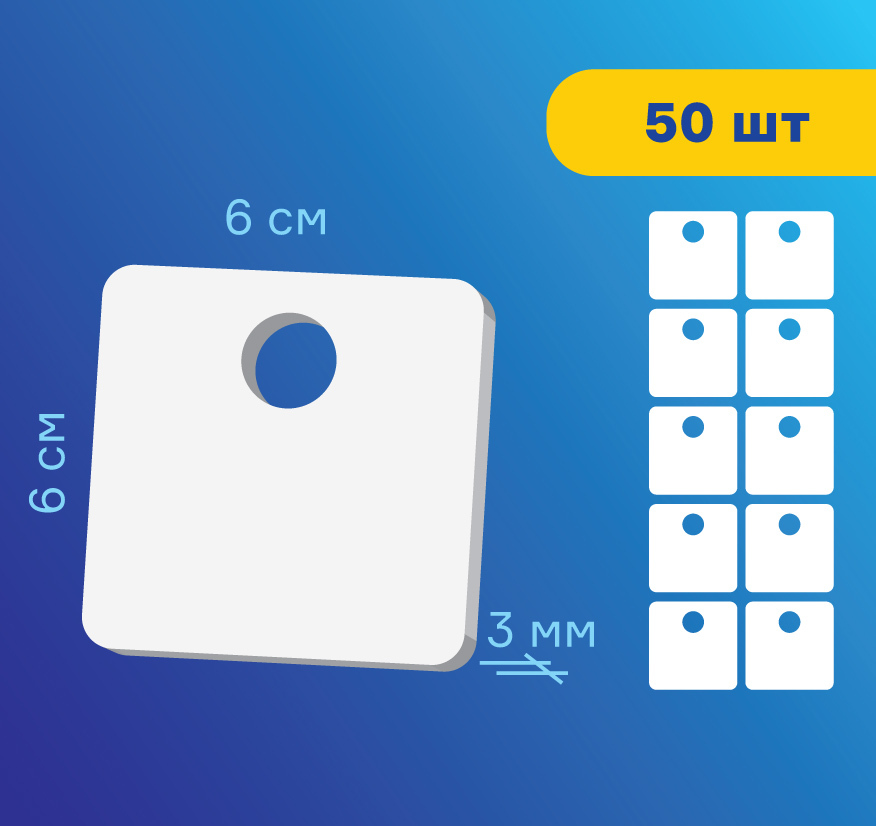 Номерки гардеробные без цифр жетоны / Форма "квадрат" / ушко 15 мм / 50 шт молочный акрил 3 мм