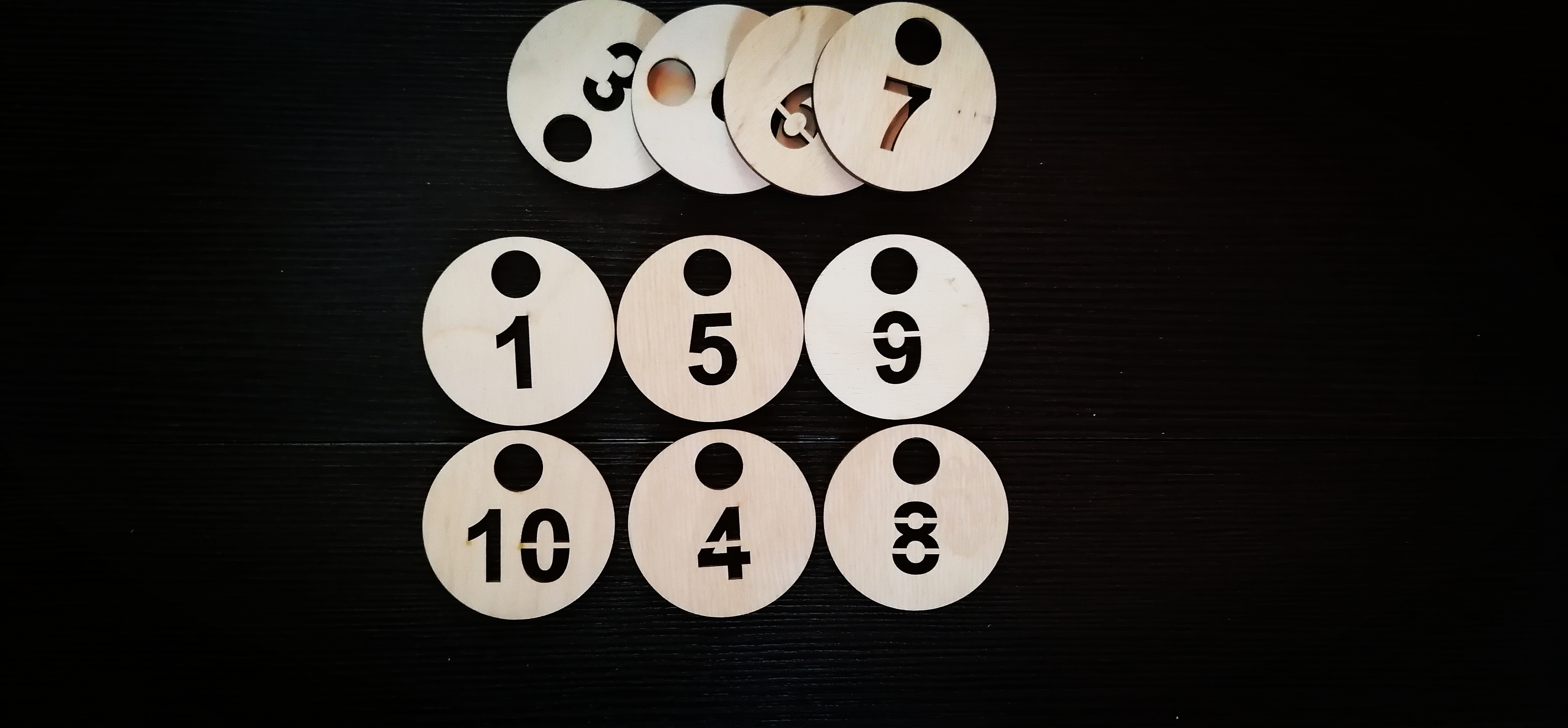 Номерки Гардеробные от 1 до 10 / круг / ушко 15 мм / фанера 3 мм