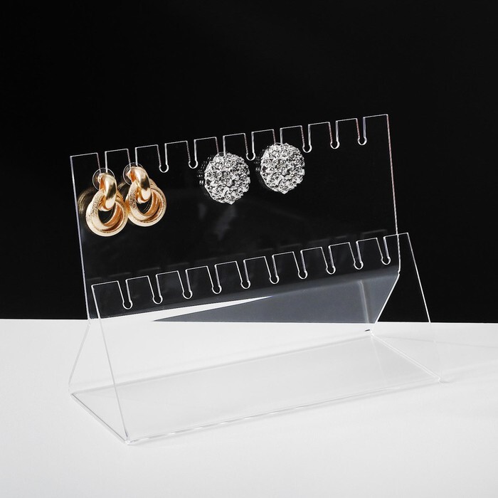 Подставка под серёжки на 10 пар, 2 ряда, 16*6,5*11, оргстекло 2 мм, В ЗАЩИТНОЙ ПЛЁНКЕ
