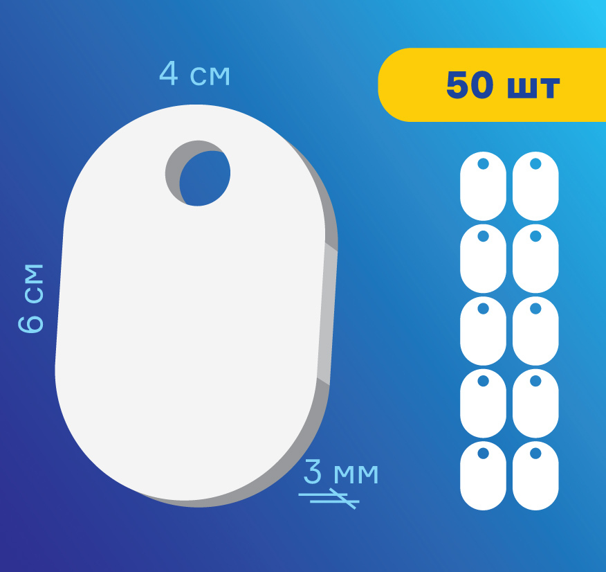 Номерки гардеробные без цифр жетоны / Форма "овал" / ушко 10 мм / 50 шт молочный акрил 3 мм