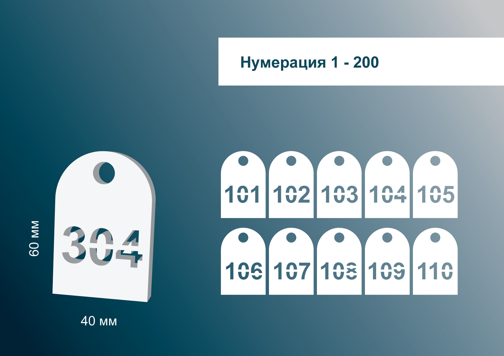 Номерки гардеробные от 1 до 200 / полукруглые / ушко 9 мм / молочный акрил 3 мм
