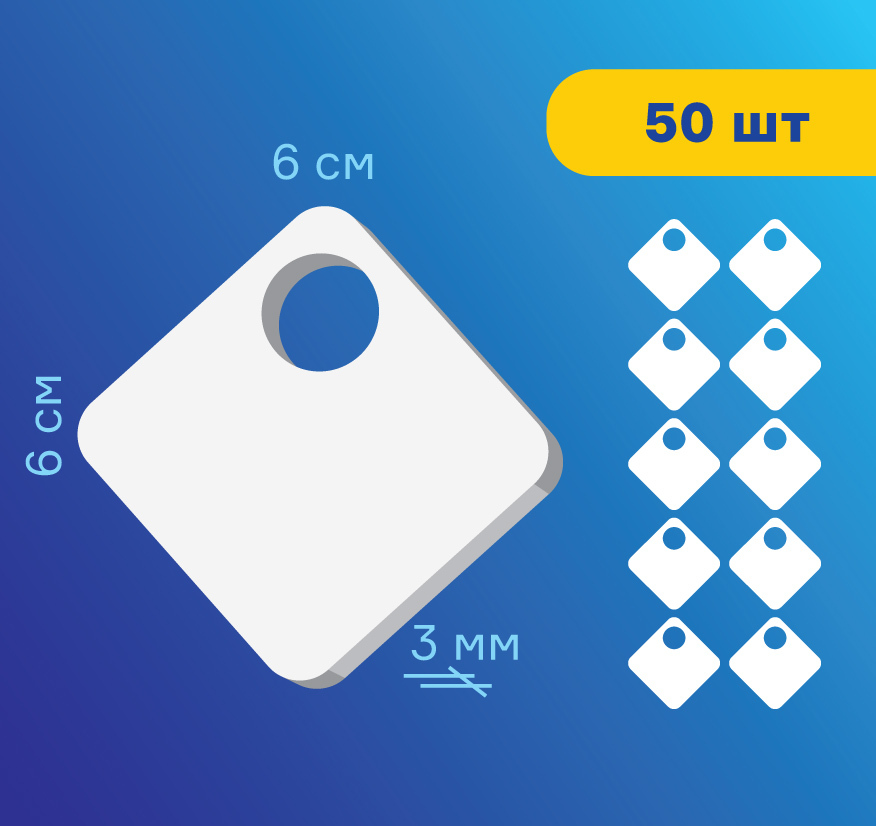 Номерки гардеробные без цифр жетоны / Форма "ромб" / ушко 15 мм / 50 шт молочный акрил 3 мм